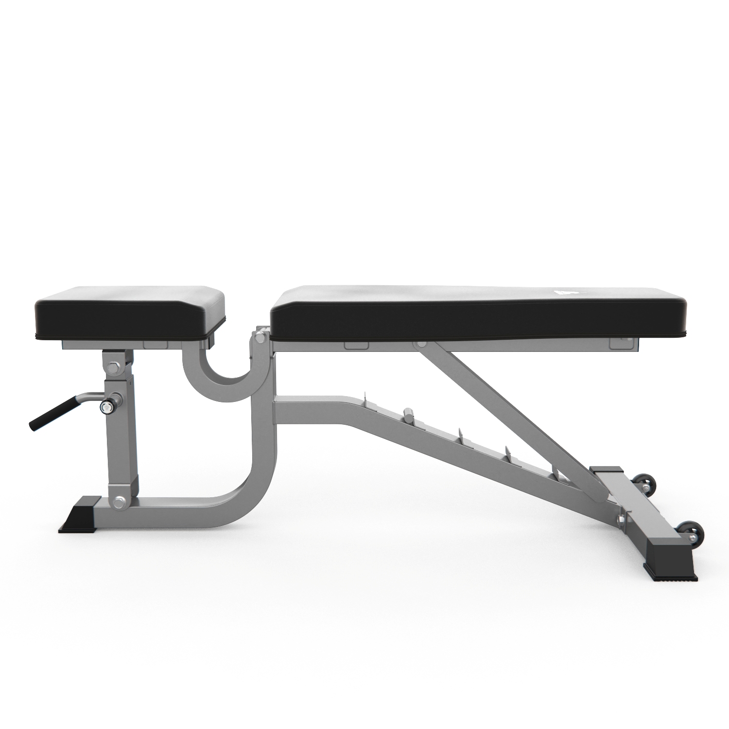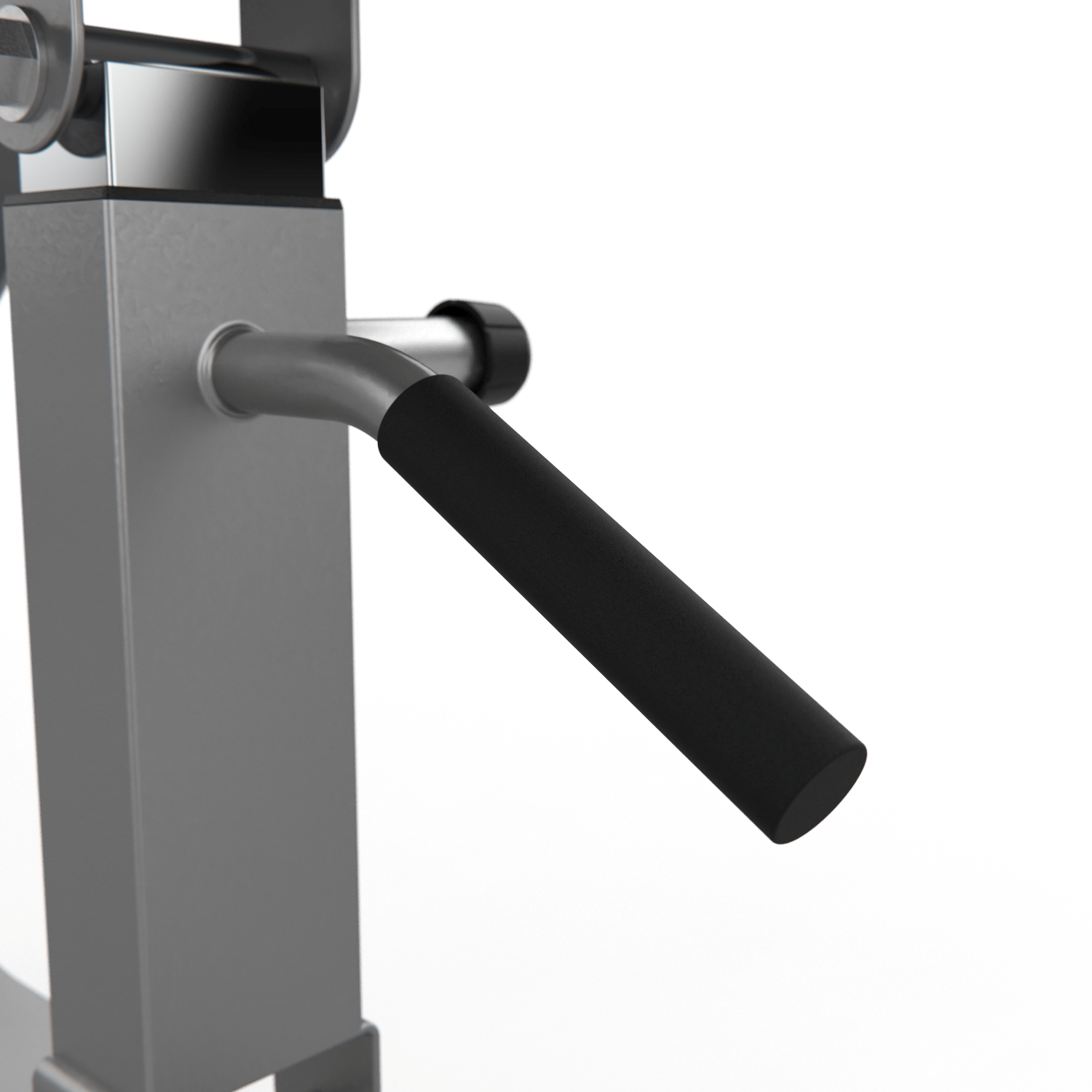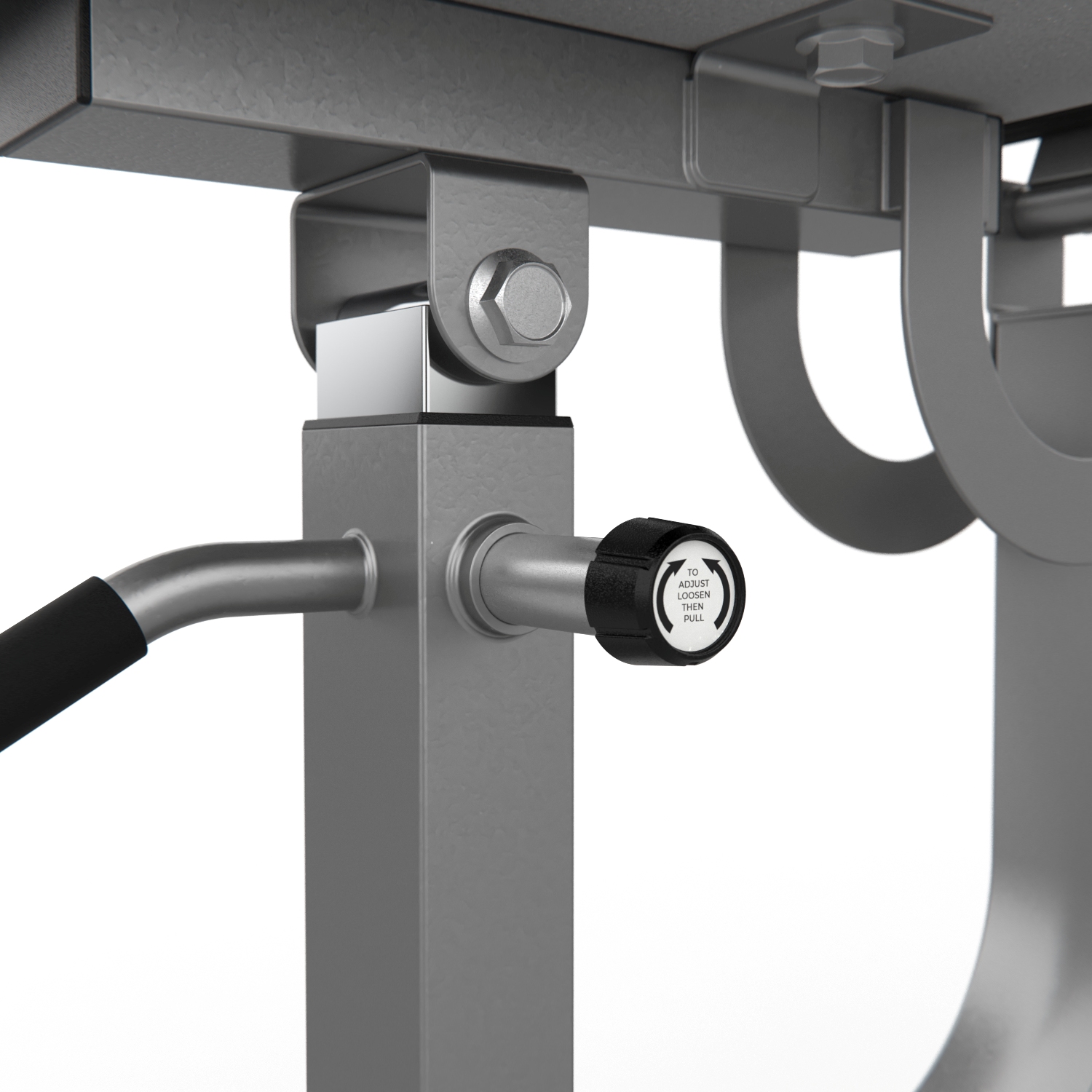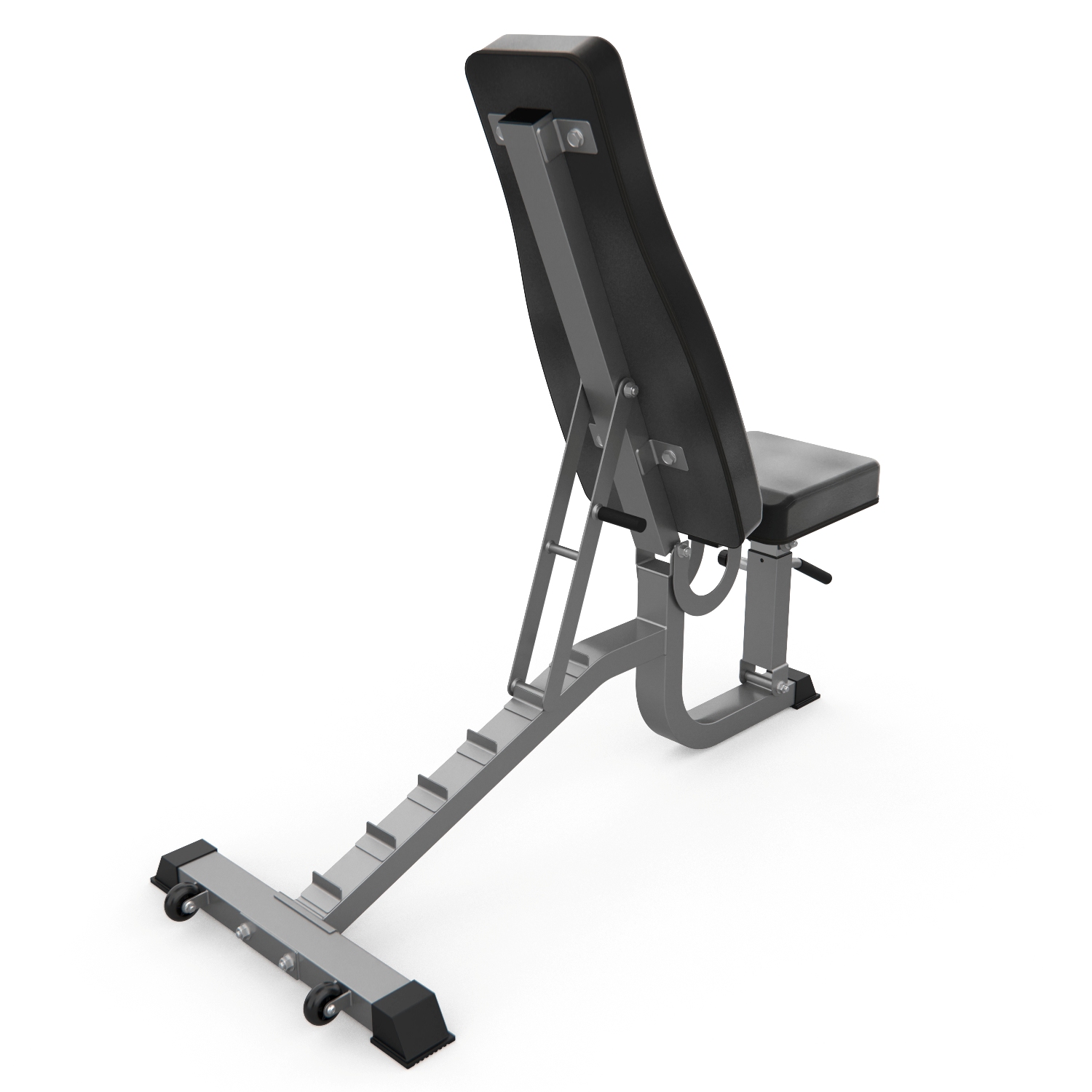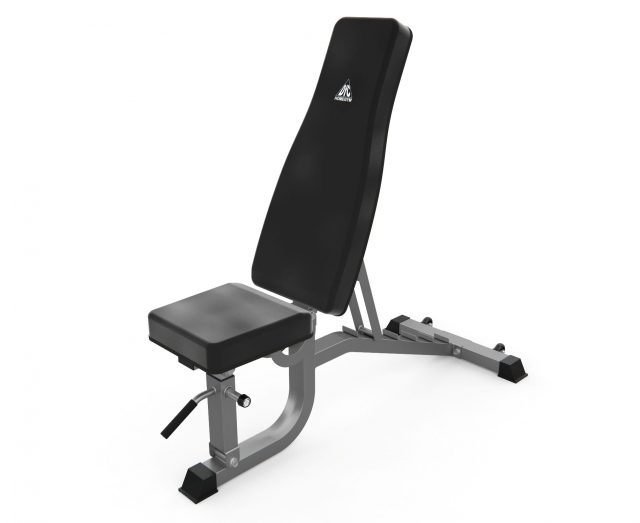 Спинку можно зафиксировать в 6-ти положениях — от 90 до 180 градусов. Фиксируется она при помощи упора на обратной стороне. Поменять положение легко, приподняв спинку и установив упор в нужном месте. Сиденье фиксируется в 5-ти положениях — от 158 до 180°. Благодаря конструкции с узкими передними ножками, упражнения наподобие жима гантелей выполнять ещё удобнее.
