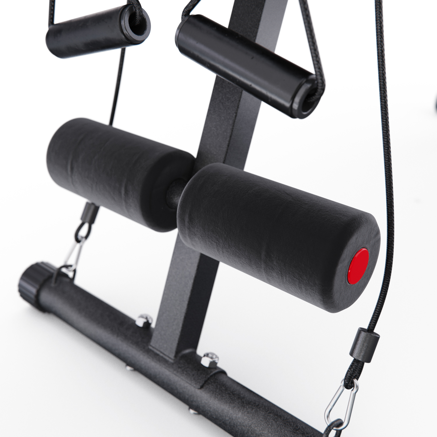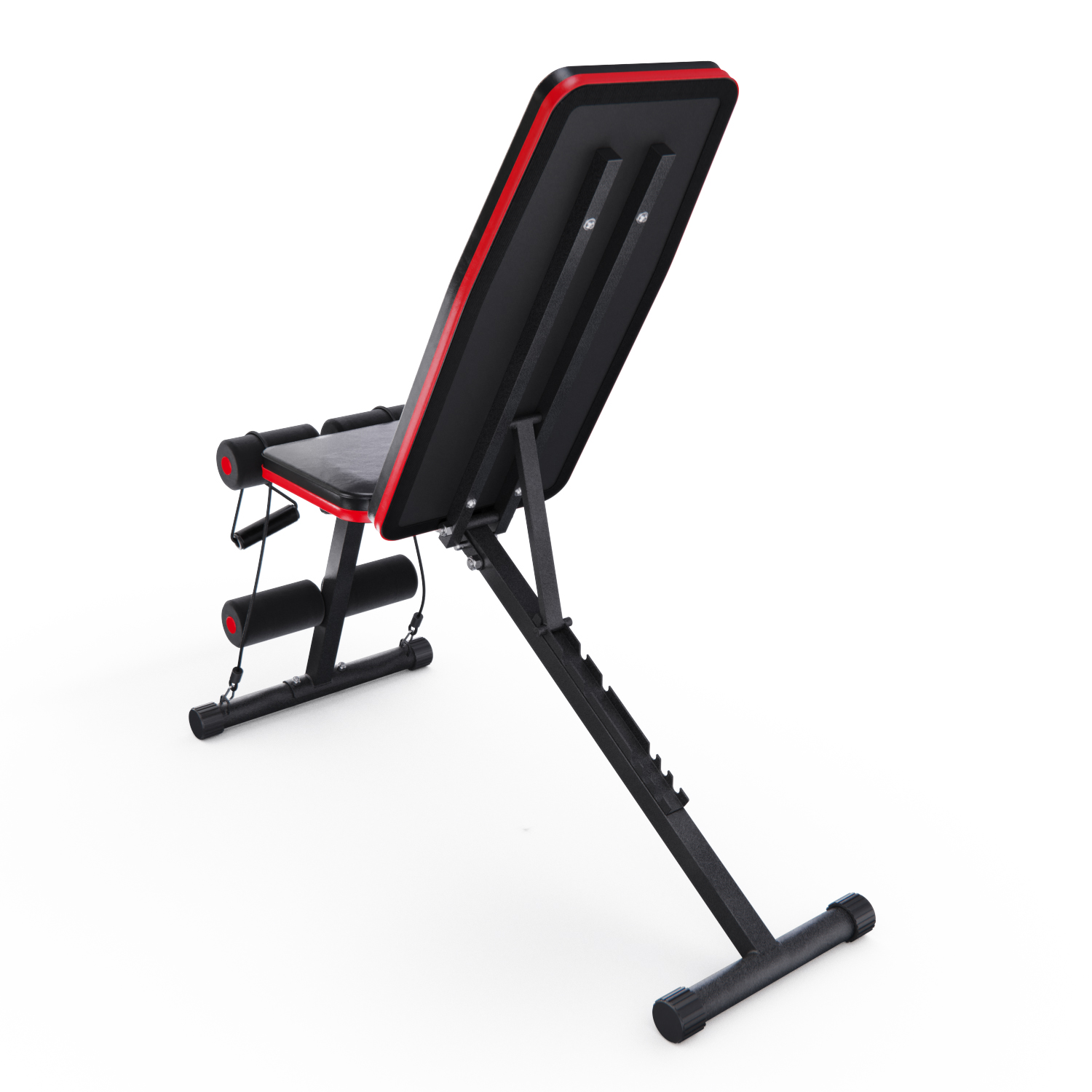 Универсальная скамья DFC DCH310 предназначена для домашних тренировок на различные группы мышц: во время занятий можно использовать собственный вес и дополнительные отягощения, гантели. Имеет стильный дизайн: обивка и каркас чёрного цвета, с яркими красными декоративными элементами.