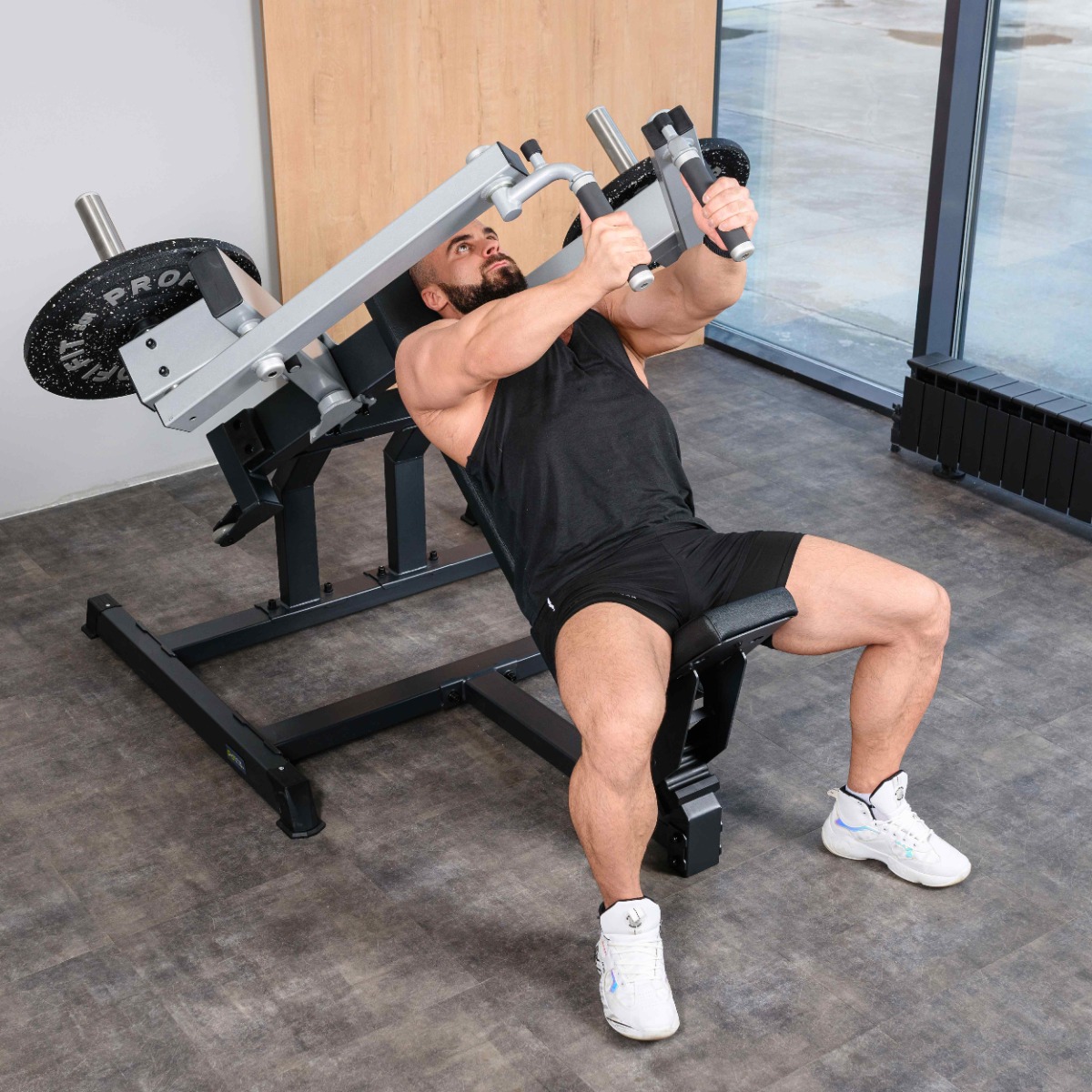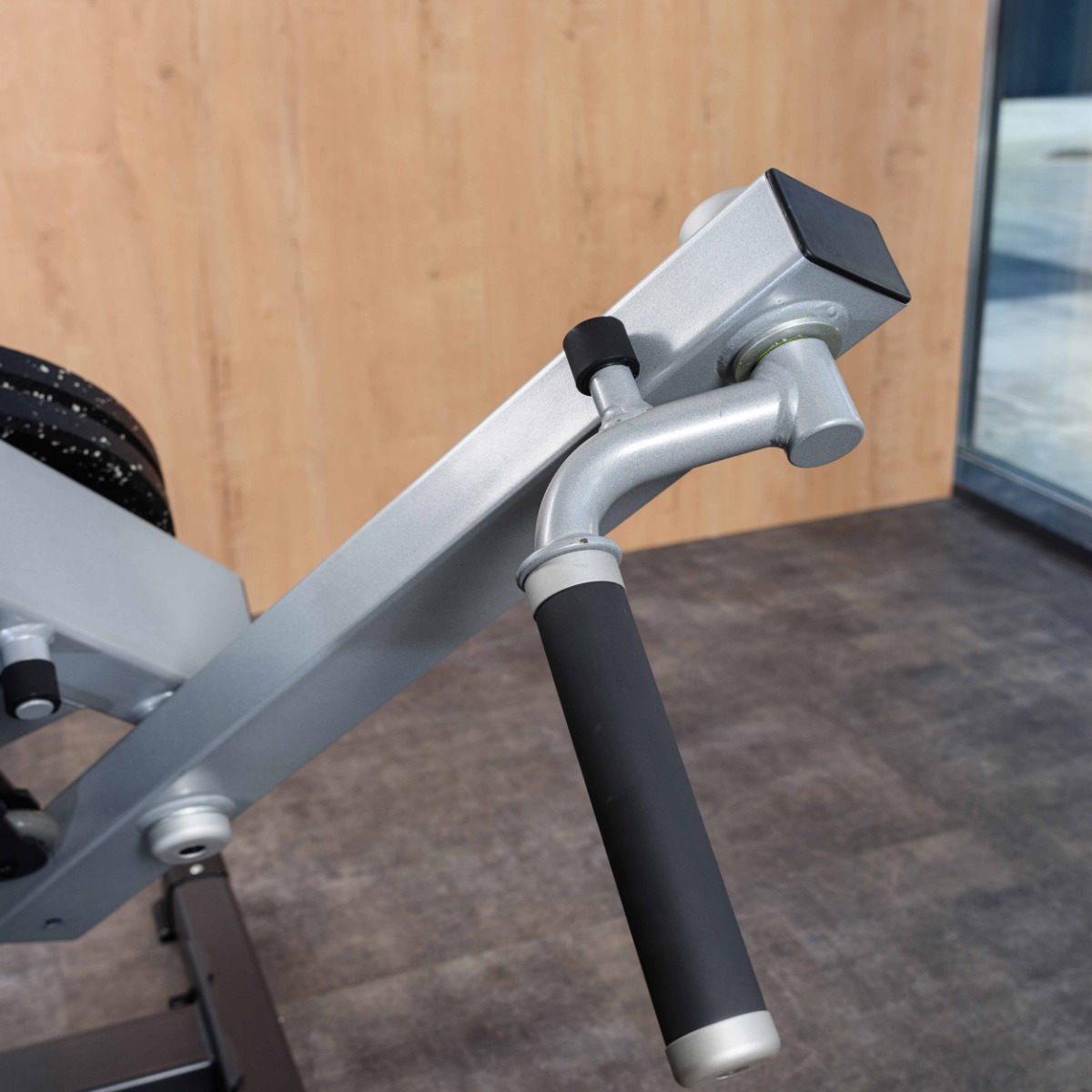 Накопители для работы со свободными весами оборудованы кольцами из плотной резины для предотвращения соприкосновения дисков с рамой тренажера.