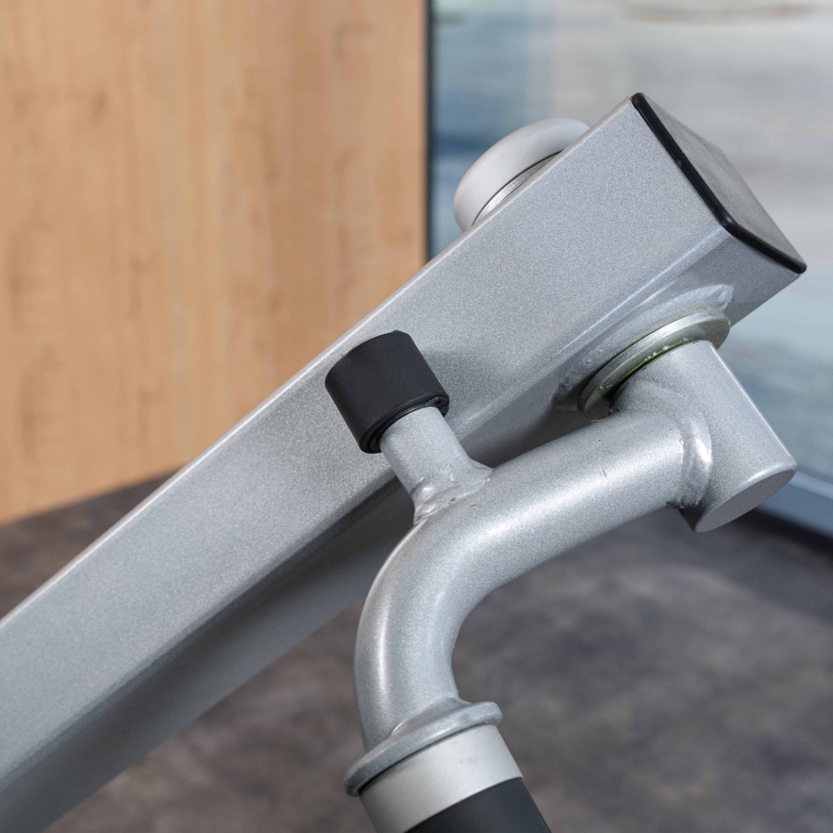 Вращающиеся рукоятки для узкого, среднего и широкого хвата выполнены из металлического прутка с нескользящим и неабсорбирующим влагу прорезиненным покрытием. Торцы закрыты заглушками из пластика.