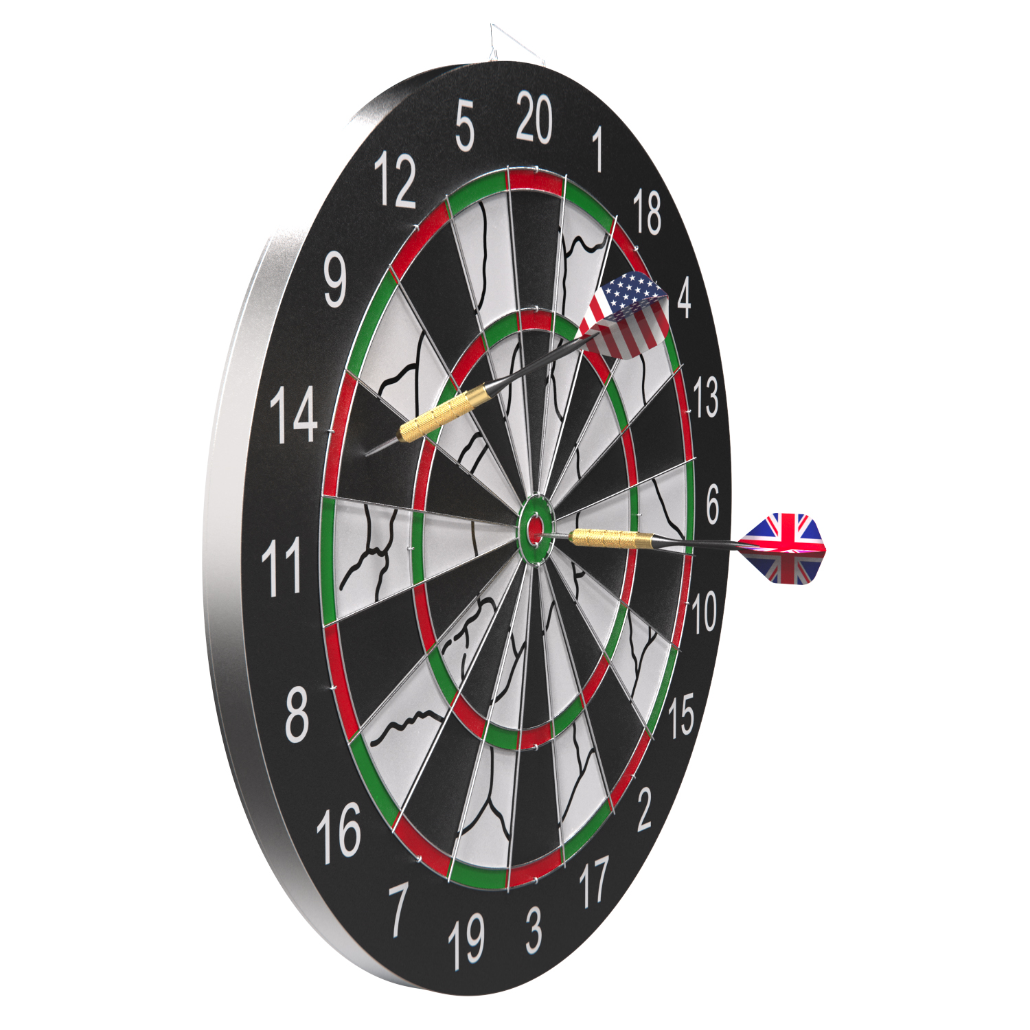 В комплект поставки входят 6 дротиков с пластиковыми наконечниками. Каждый дротик весит 16 грамм, что делает его легким и удобным для бросков. Кроме того, в комплекте идут флайты с американским и английским флагами, что делает эту мишень еще более интересной. Диаметр мишени составляет 34 см с одной стороны и 45 см — с другой.
