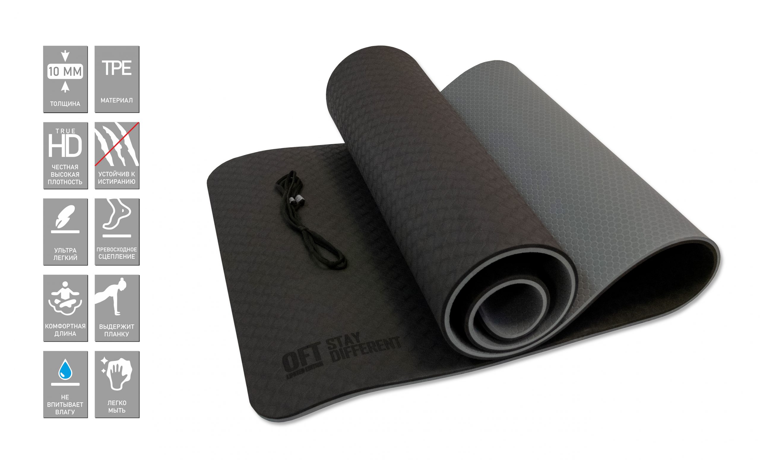 Мат для аэробики NBR 10 мм графитовый с кольцами