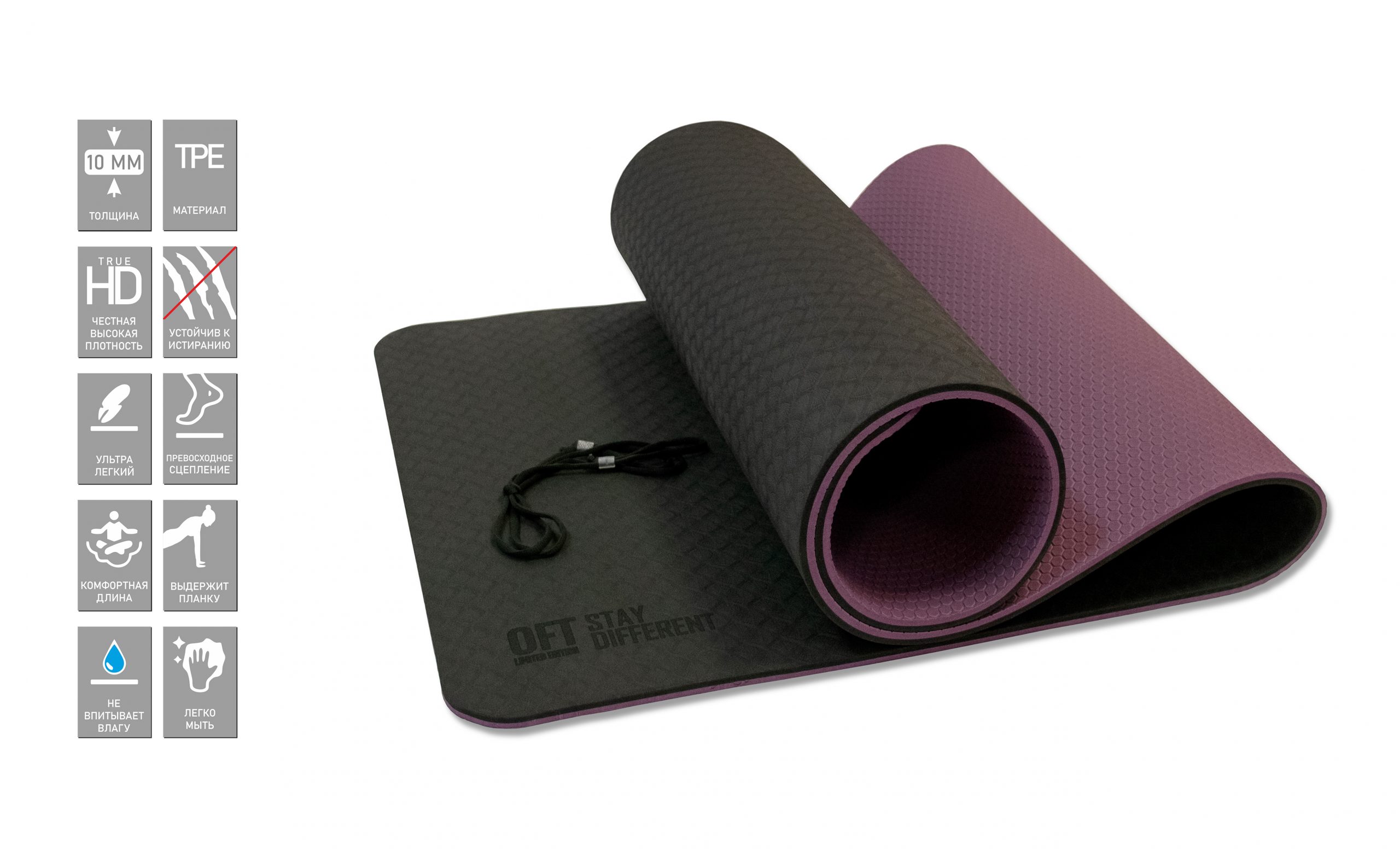 Мат для аэробики NBR 12,5 мм фиолетовый с кольцами