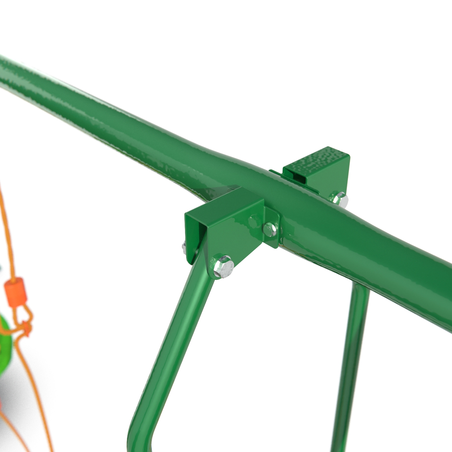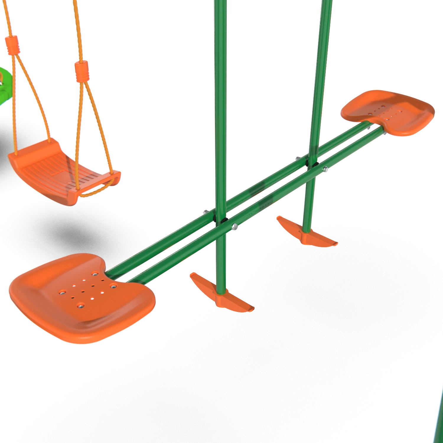 Стальной профиль 45×1,5 мм, из которого изготовлена конструкция, выдерживает нагрузку до 145 кг, поэтому на качелях одновременно могут заниматься не более 4 детей возрастом от 3 лет и весом до 35 кг. Жесткость достигается за счёт дополнительных боковых ребер, благодаря которым даже высокая нагрузка распределяется равномерно и качели не раскачиваются под действием активных движений.