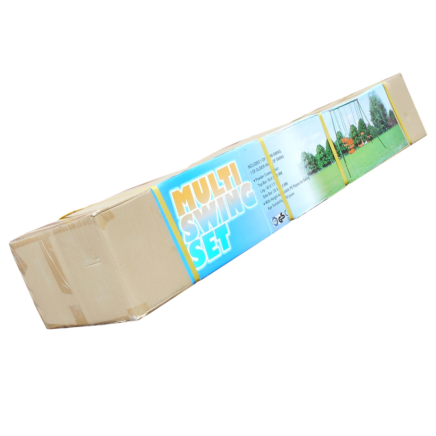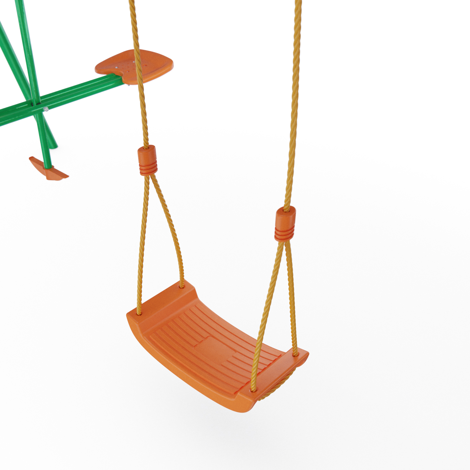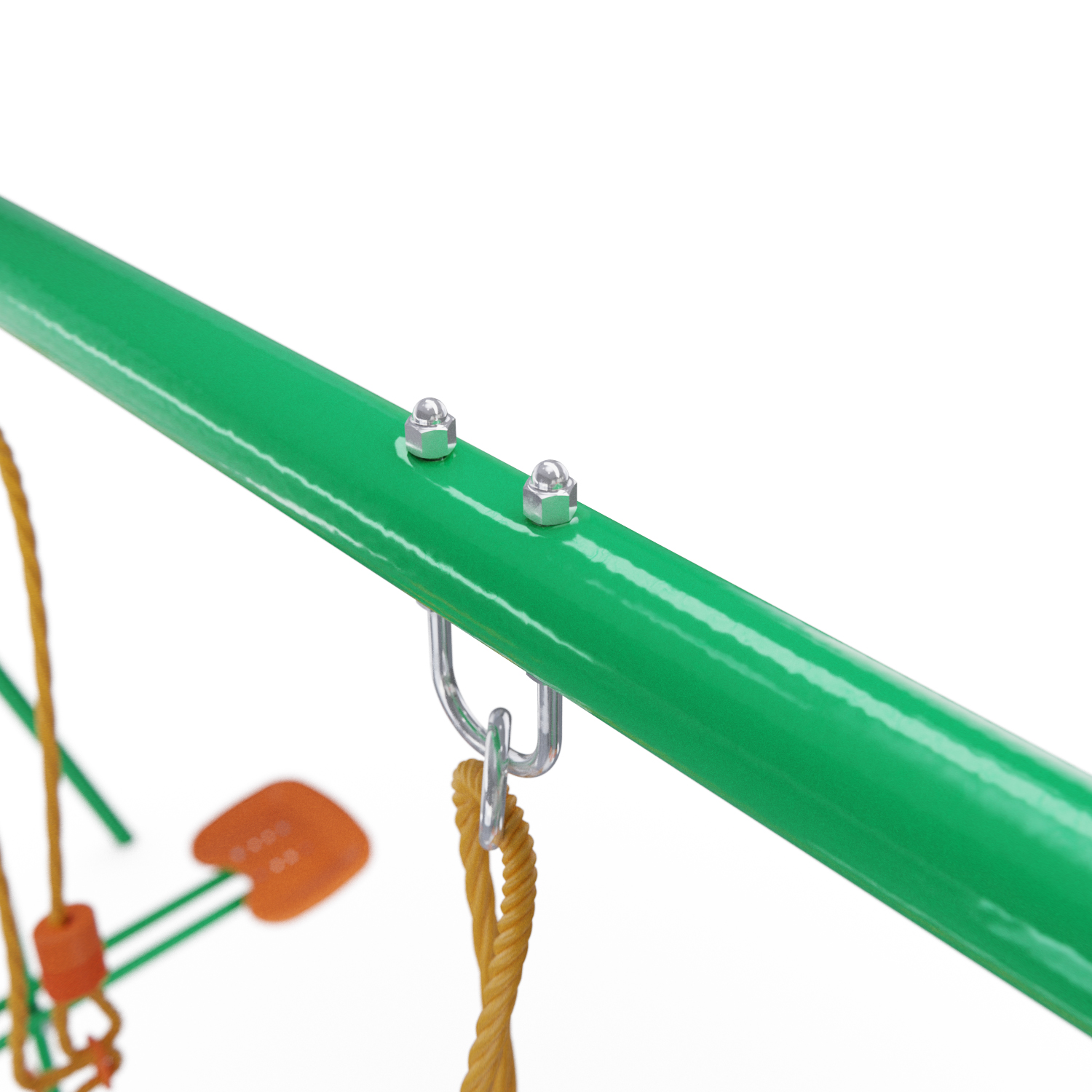 Устойчивость такой массивной конструкции достигается за счёт применения широкого профиля — 45×1,5 мм и 50,8×2 мм — который выдерживает нагрузку до 175 кг! Сиденья качелей имеют ребристую поверхность для предотвращения соскальзывания детей. Качели могут безопасно эксплуатироваться детьми от 3 лет.