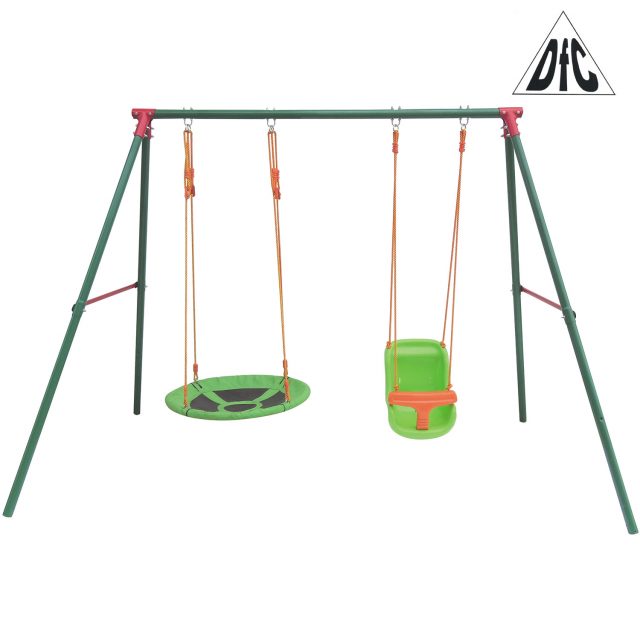Комплекс включает в себя: качели — гнездо и качели для малышей.