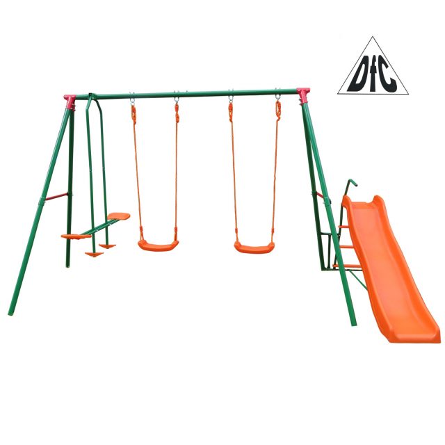 Спускной желоб и сидение качелей изготовлены из пластика.