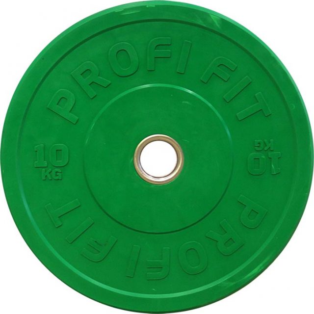 Диск для штанги каучуковый, зеленый, PROFI-FIT D-51, 10 кг.