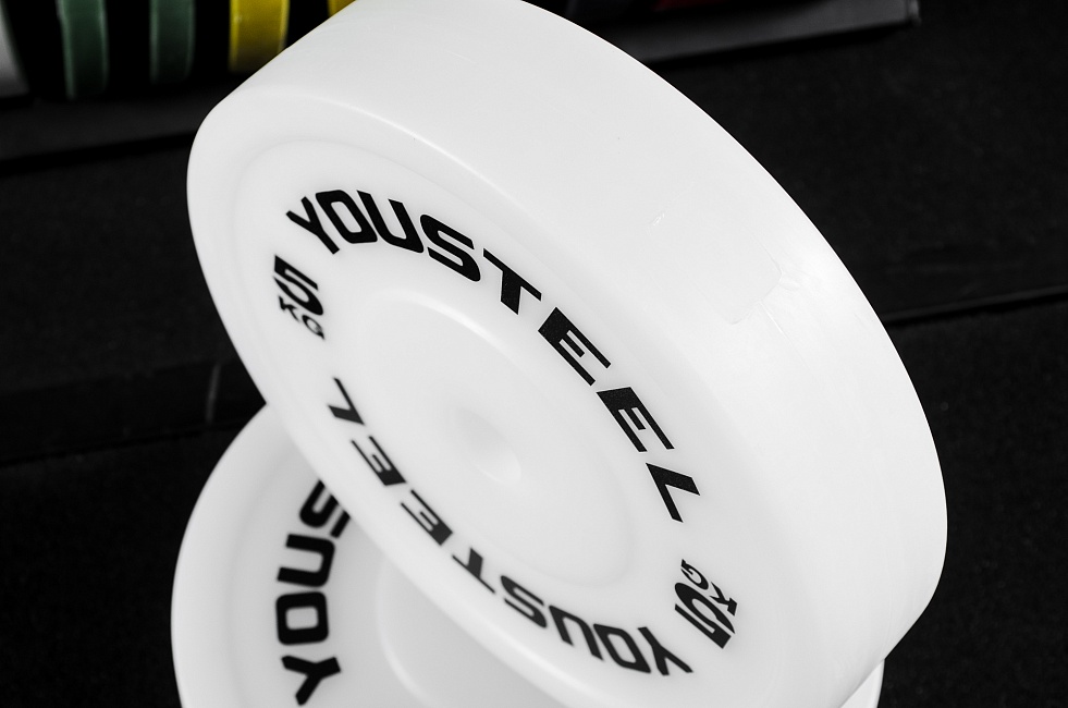 Изготовленные из полиэтилена высокой плотности, диски Yousteel имеют тот же внешний диаметр 450 мм, что и стандартные полноразмерные олимпийские бампированные диски. Это позволяет начинающим спортсменам, детям и юниорам учиться основам тяжелой атлетики, а реабилитирующимся восстанавливать правильную технику движений с надлежащей высоты над землей.