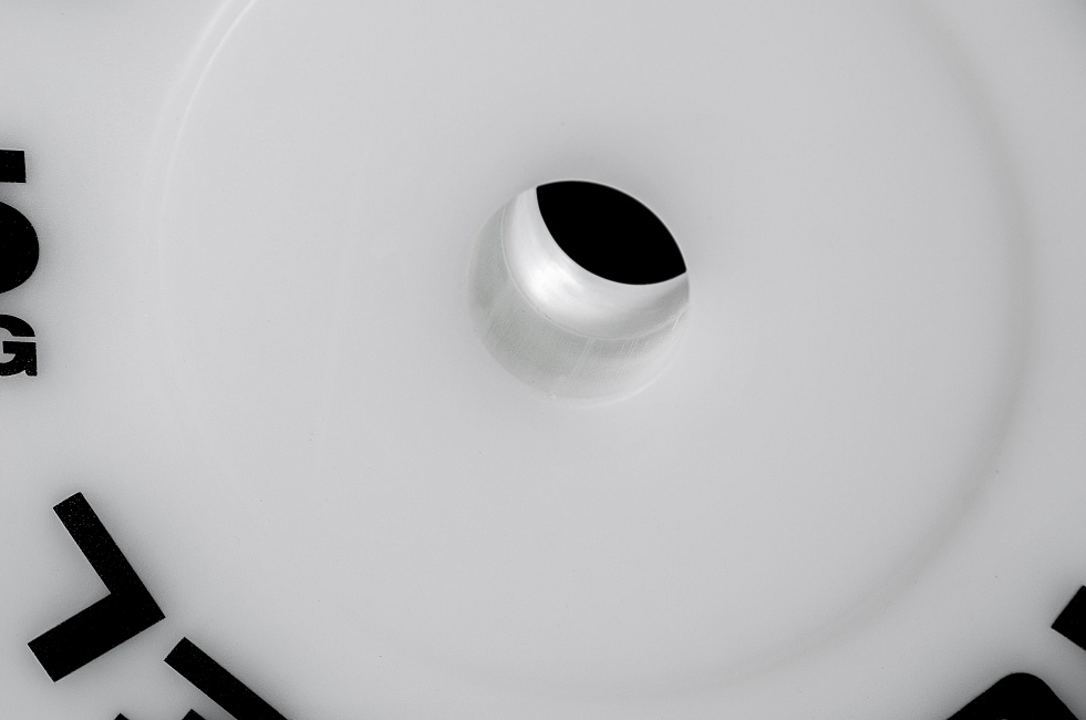 Толщина дисков 2,5 и 5 кг — 80 и 100 мм соответственно. Диск сделан целиком из пластика. Внутри полый. Но толстые стенки и увеличенная толщина делает его прочным и износостойким.
