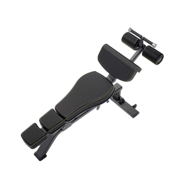 Скамья для пресса с отрицательным углом наклона спинки предназначена для выполнения упражнений на пресс, а также скручиваний на пресс под углом.