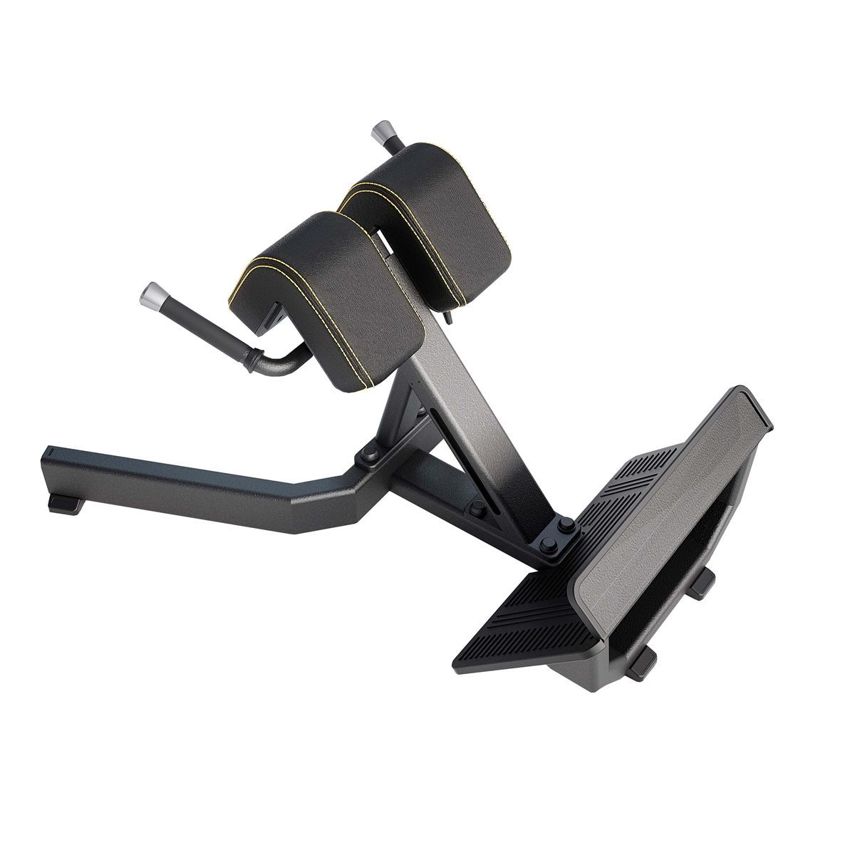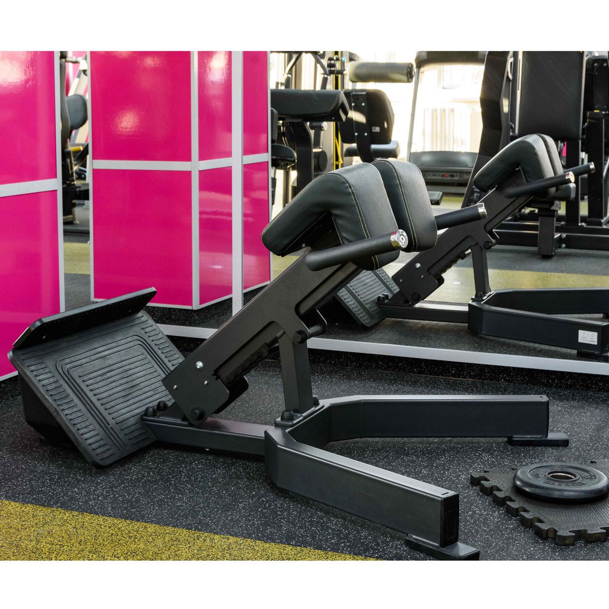 Тренажер предназначен для выполнения упражнения гиперэкстензия, которое направлено на тренировку мышц нижней части спины, ягодичных мышц и задней поверхности бедра.