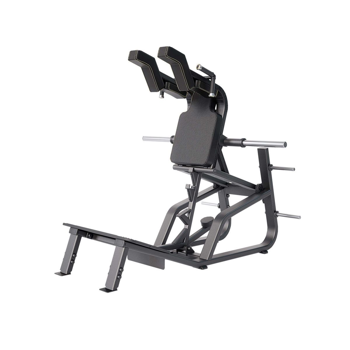 Тренажер оснащен четырьмя держателями для дисков, на которых можно компактно хранить диски. Это позволяет быстро увеличивать или уменьшать нагрузку между подходами и не загромождать тренажёрный зал аксессуарами для силовых тренировок со свободными весами.
