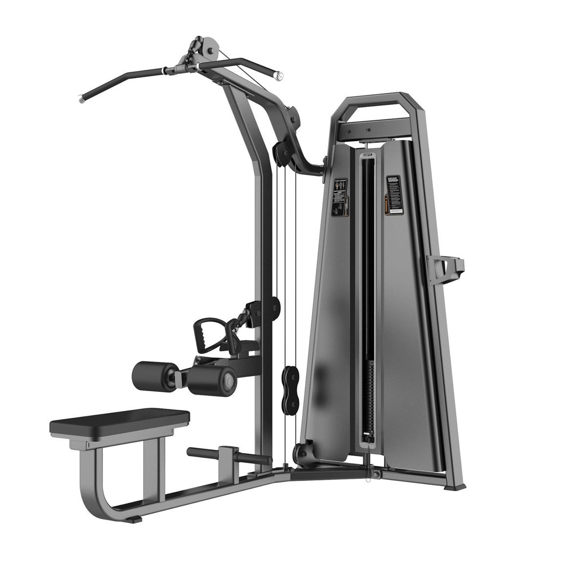 Силовой тренажер «E-1085B Тяга сверху/Гребная тяга» соответствует всем требованиям профессионального оборудования. Конструктивные элементы рамы изготовлены из высококачественной стали, покрыты износостойкой двухслойной полимерной краской. Толщина профиля 3 мм имеет большой радиус угла, что придает тренажеру более элегантный внешний вид. Резиновые подпятники обеспечивают устойчивость и предотвращают повреждение полового покрытия в помещении. Для приведения грузоблока в движение используется трос диаметром 5,8 мм. Сиденье выполнены из вспененного PU, обивка из высококачественной искусственной кожи.
