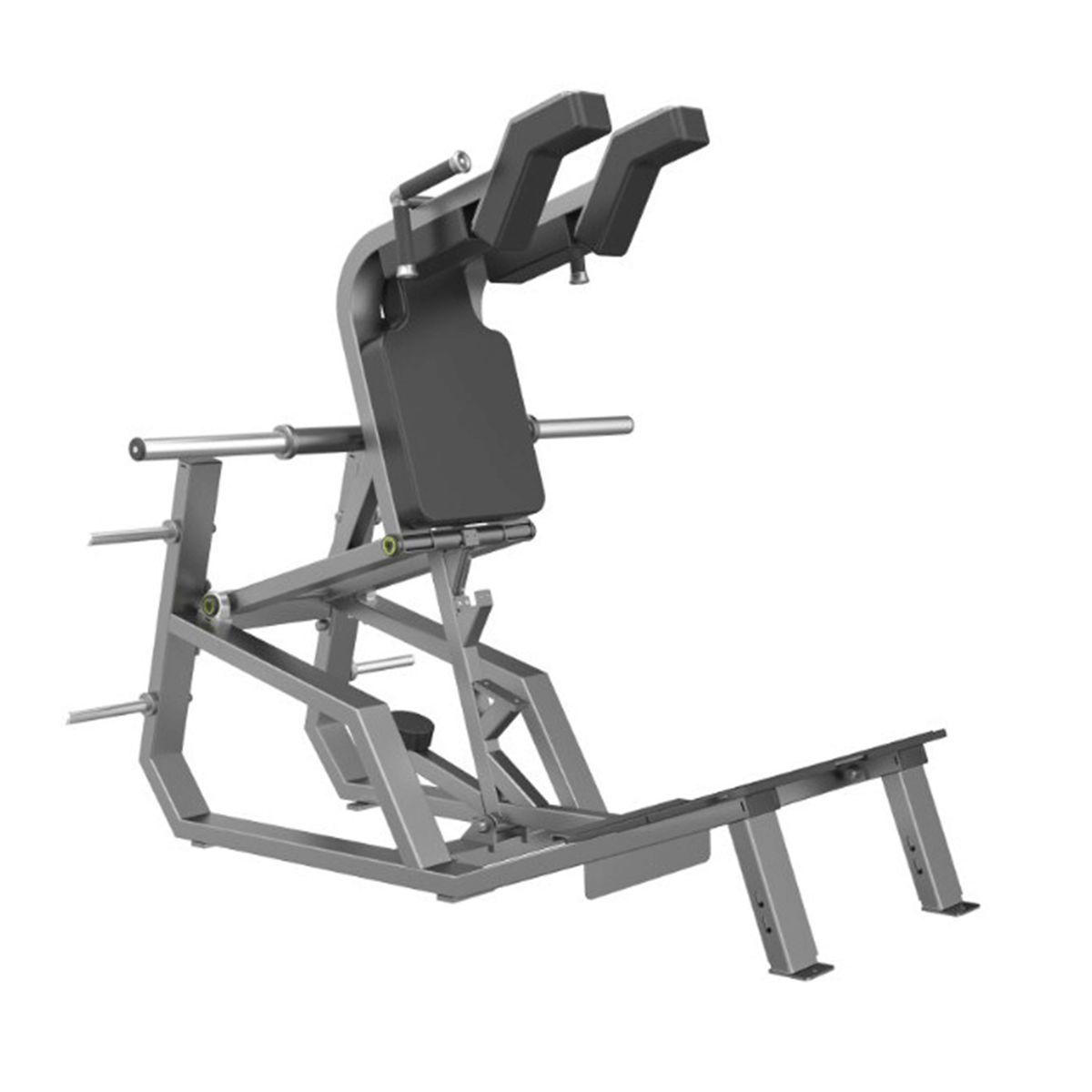 Тренажер предназначен для выполнения большого числа различных упражнений с элементами приседания. Может быть использован как с разгруженным грифом для дисков, так и с нагруженным. Упражнения можно выполнять лицом или спиной вперед. Оборудование отличается опорой для ног увеличенного размера, удобными подушками для плеч и штифтами для хранения дисков.
