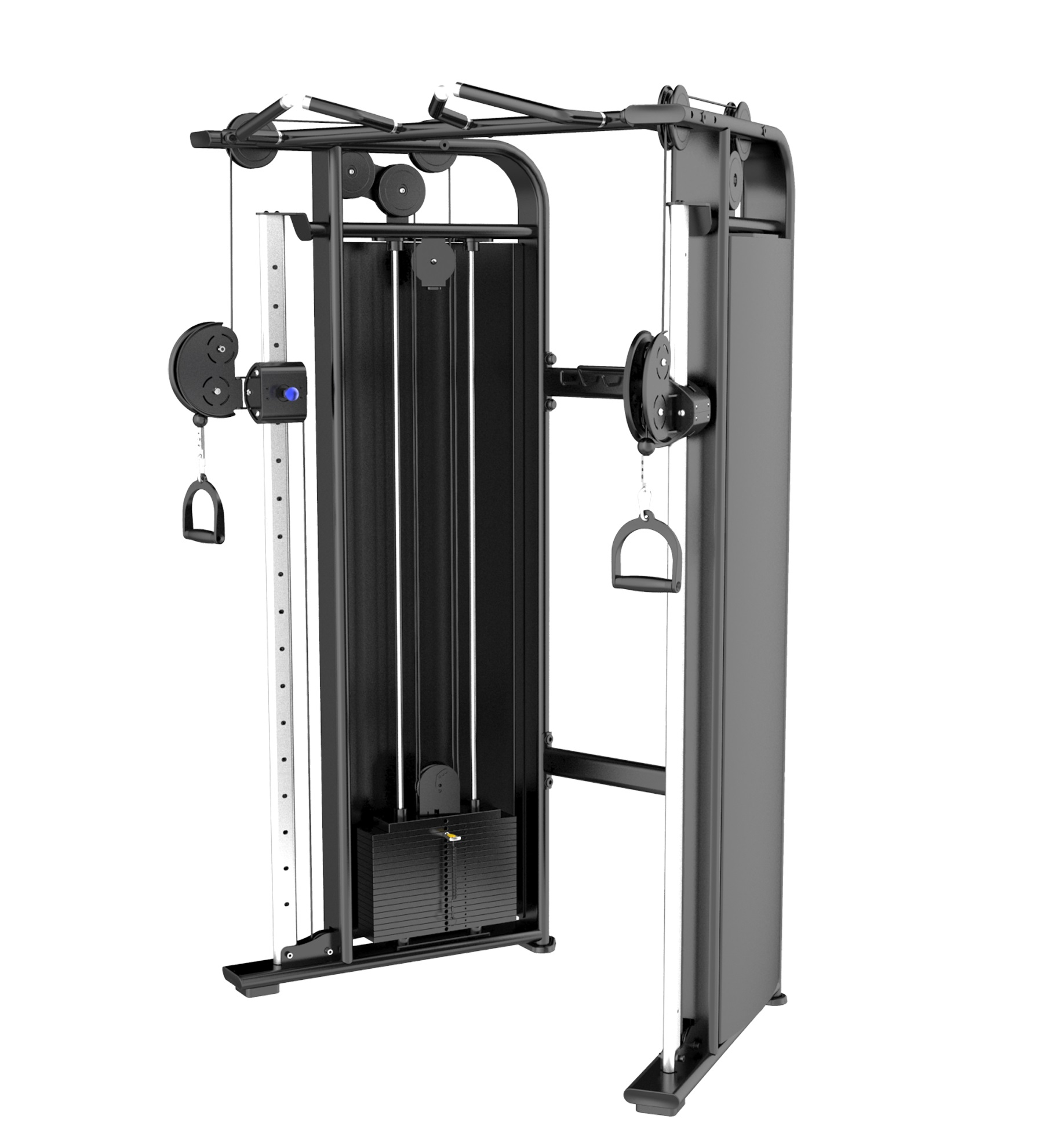 Комплекс обеспечивает возможность выполнять множество различных упражнений на развитие силы, занимая при этом минимум места. Наличие двух весовых стеков позволяет устанавливать индивидуальное сопротивление для правой и левой сторон тела. Тренажер снабжен поворотными рукоятками, которые автоматически регулируются под длину рук спортсменов.