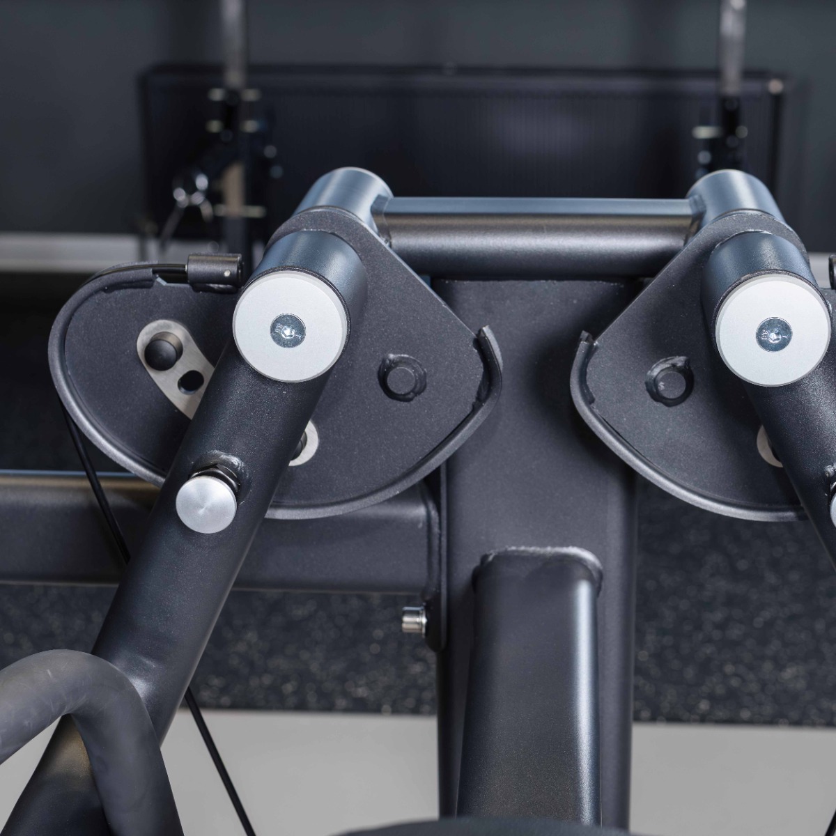 Резиново-пластиковые подпятники обеспечивают устойчивость тренажера и предохраняют напольное покрытие от повреждений.
