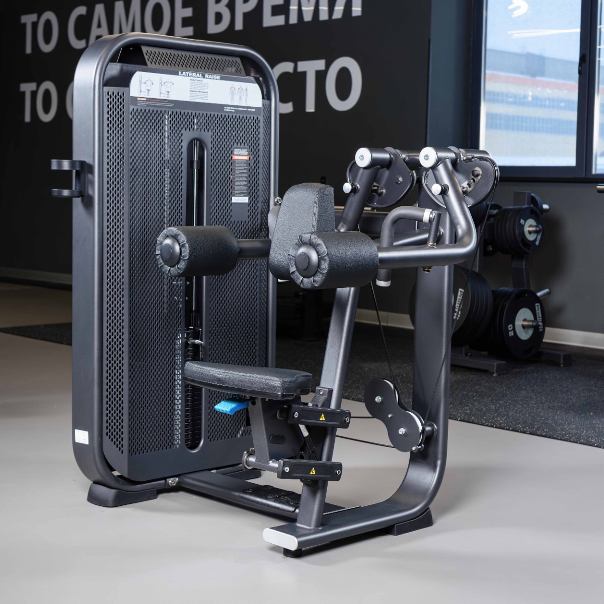 Профессиональный тренажер для коммерческого использования E7005 Дельт-машина предназначен для изолирующих упражнений на средние пучки дельтовидных мышц. Принцип работы заключается в разведении рук в стороны.