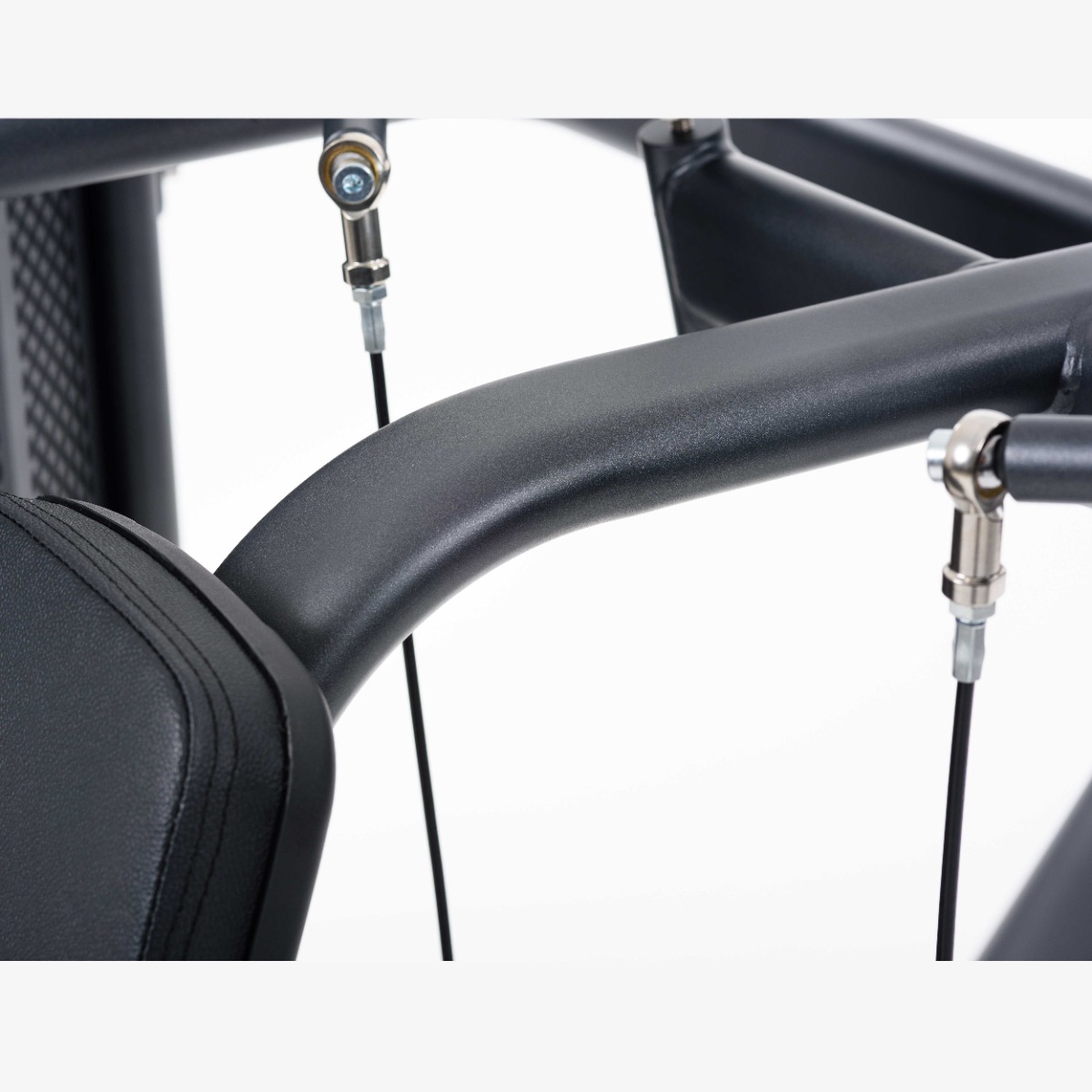 Прорезь в защитном кожухе грузоблока для доступа к регулировке нагрузки шлифованная с завальцованными внутрь гранями по всему периметру для безопасного доступа к весовому стеку и обеспечения дополнительной жёсткости рамы грузоблока.