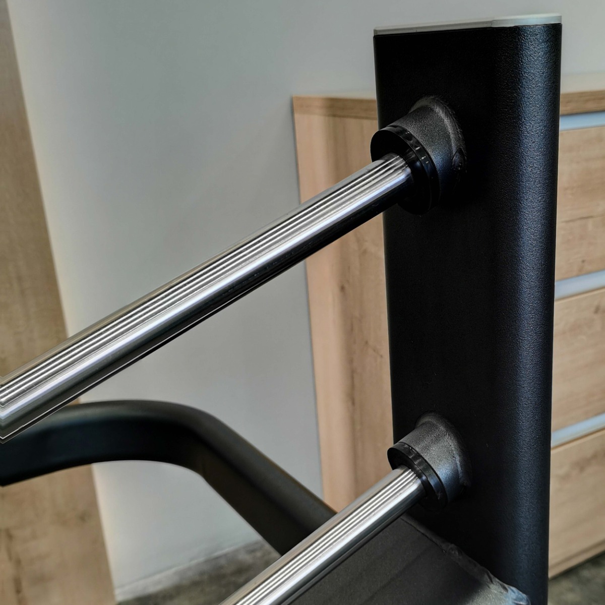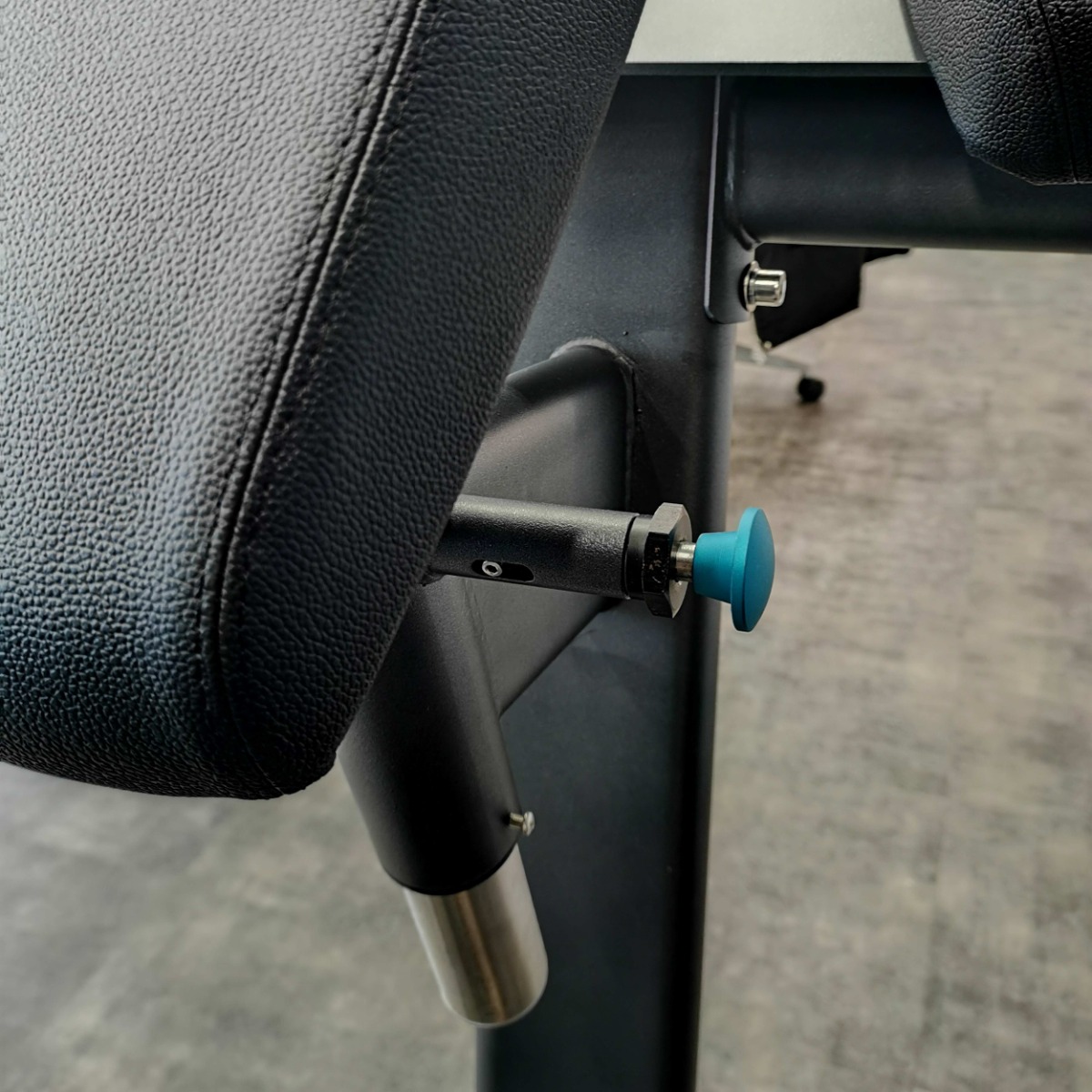 Направляющие для движения рычага оборудованы резиновыми отбойниками для амортизации при работе в тренажере и предотвращения механического повреждения элементов тренажера.