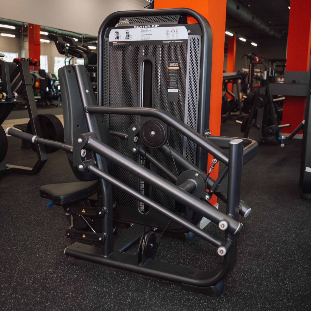 Профессиональный тренажер для коммерческого использования E7026 Трицепс-машина. Имитация отжиманий предназначен для изолирующего упражнения на трицепсы в положении сидя.