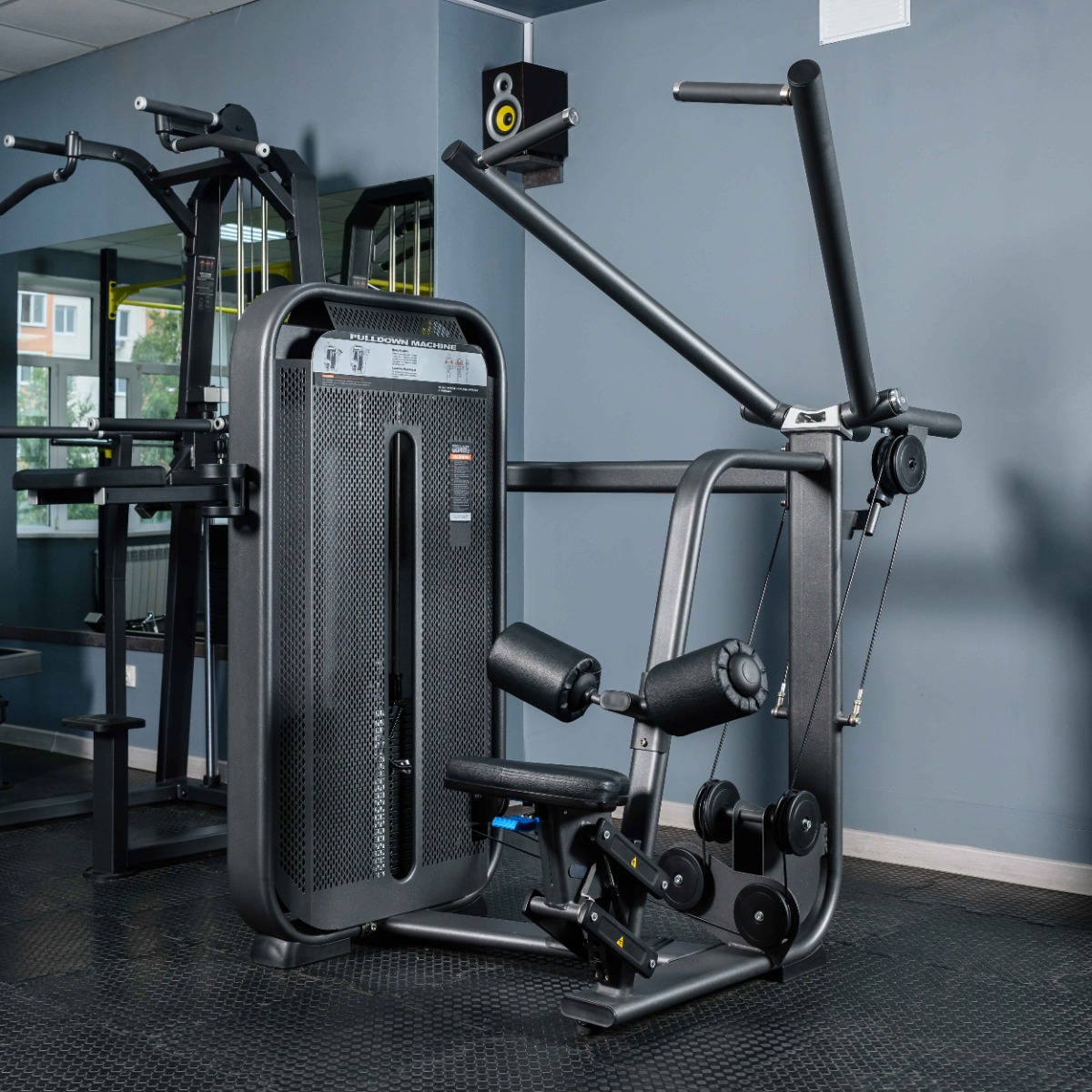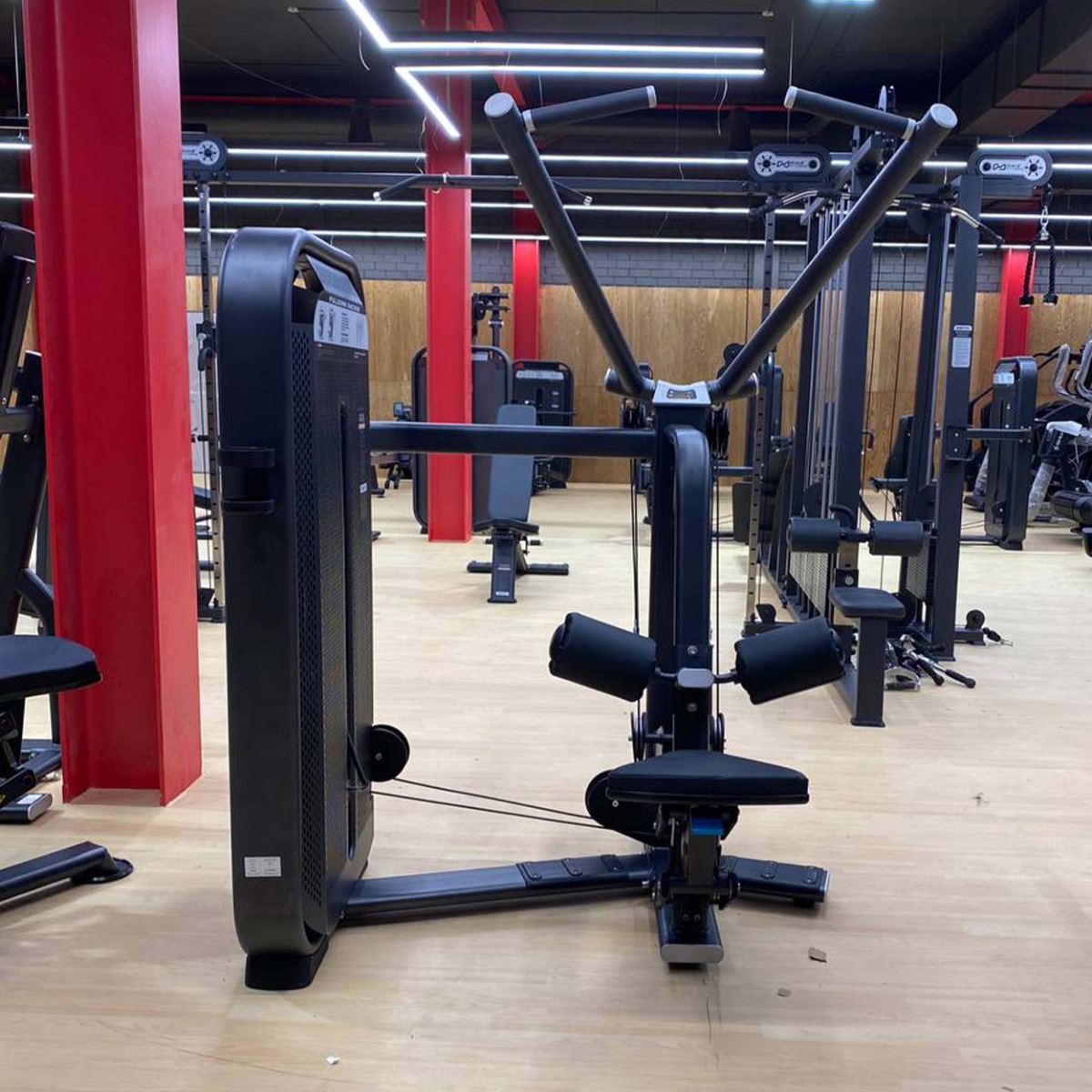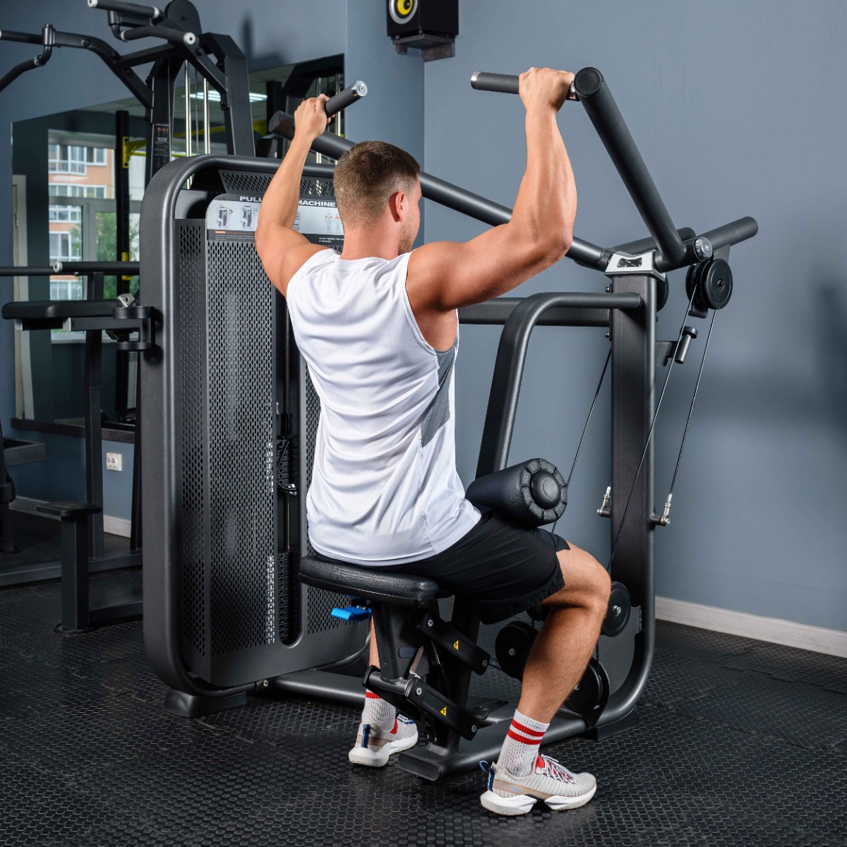 Профессиональный тренажер для коммерческого использования E7035 Тяга сверху. Вертикальный блок предназначен для изолирующего упражнения на широчайшие мышцы спины, круглые мышцы спины и задние дельты, мышцы плечевого пояса.