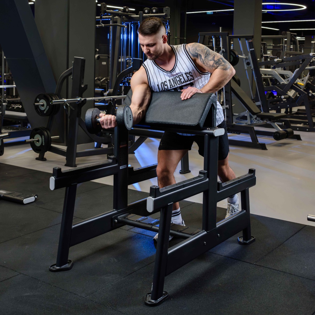 Профессиональный тренажер для коммерческого использования E7044 Скамья для бицепса. Скамья Скотта предназначен для проработки бицепса при помощи штанги или гантелей.