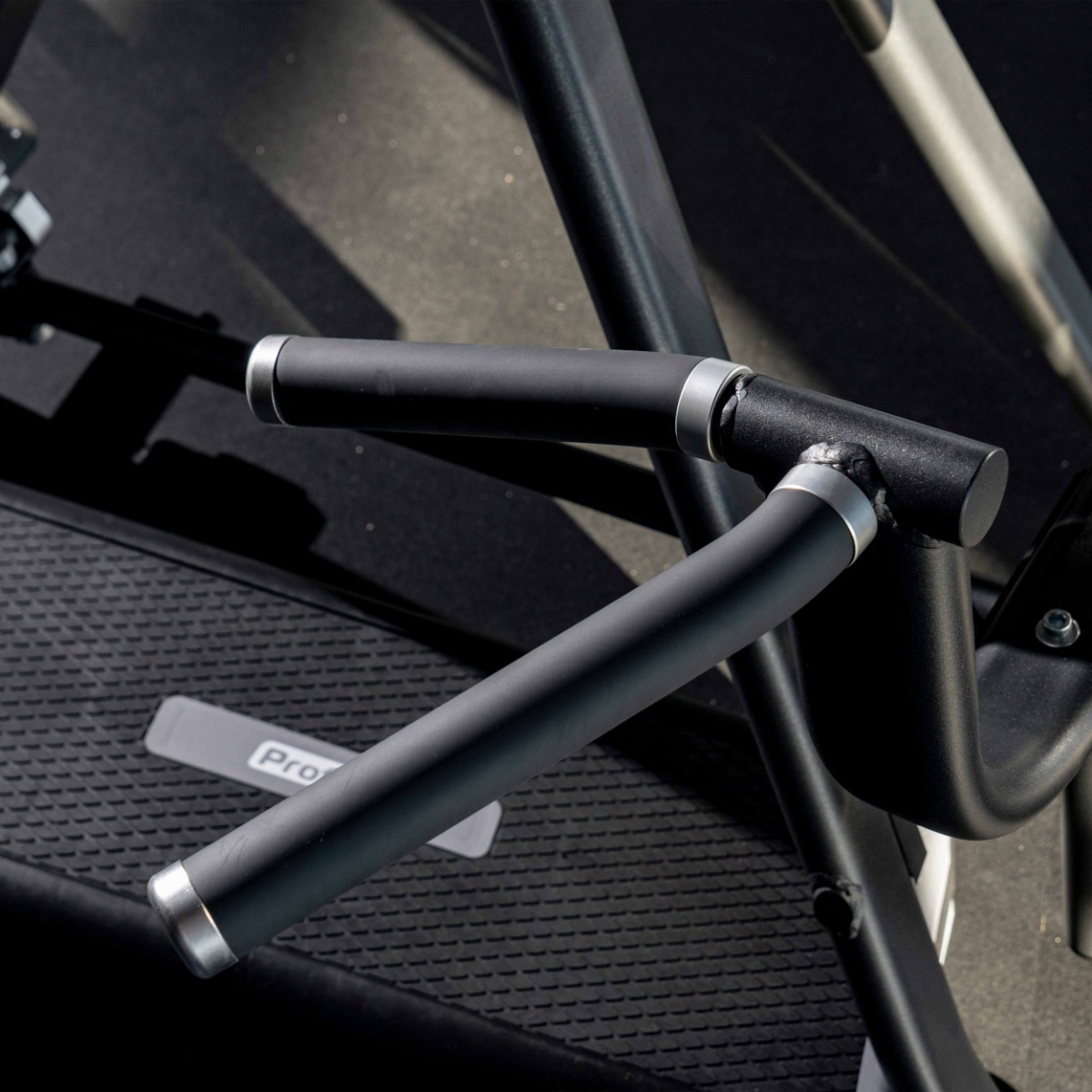 Две пары рукояток для разного хвата изготовлены из металлической трубы с резиновым неабсорбирующим влагу покрытием, оборудованы декоративными заглушками-наконечниками, зафиксированными болтами.