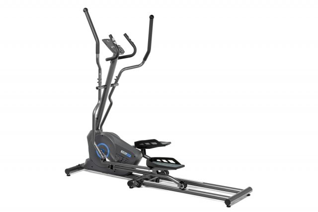 Тренировочный компьютер представлен черно-белым LCD-дисплеем с удобной подставкой под смартфон или планшет. На экран выводятся все основные параметры тренировки – программный профиль, время, дистанция, скорость, калории, уровни нагрузки, обороты в мин. и пульс. 12 предустановленных программ рассчитаны на тренировку скоростных качеств, выносливости, укрепления сердечно-сосудистой системы и похудания. Нагрузка регулируется электронным способом через консольные клавиши в 16 положениях. Измерение пульса происходит путем удержания ладоней на сенсорных датчиках пульса, расположенных на поручнях. К числу дополнительных характеристик эллипсоида относятся такие опции как транспортировочные ролики и компенсаторы неровностей пола. Переместить изделие из одного места в другое не составит большого труда, а компенсаторы позволят отрегулировать положение ножек на неровной поверхности.