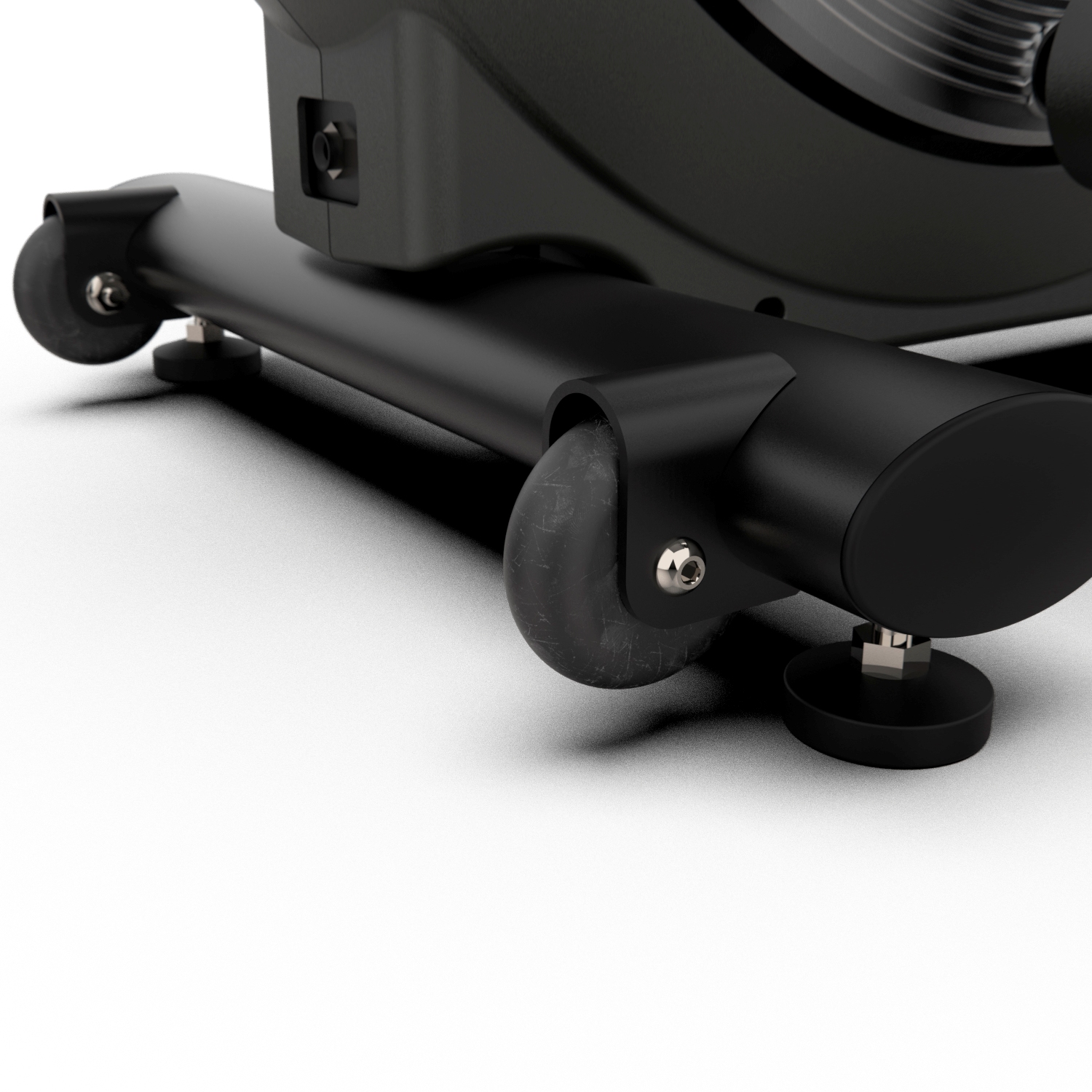 В основании тренажёра расположены колёсики и удобная ручка. Это позволяет легко транспортировать его до и после тренировки или если нужно убрать на время.