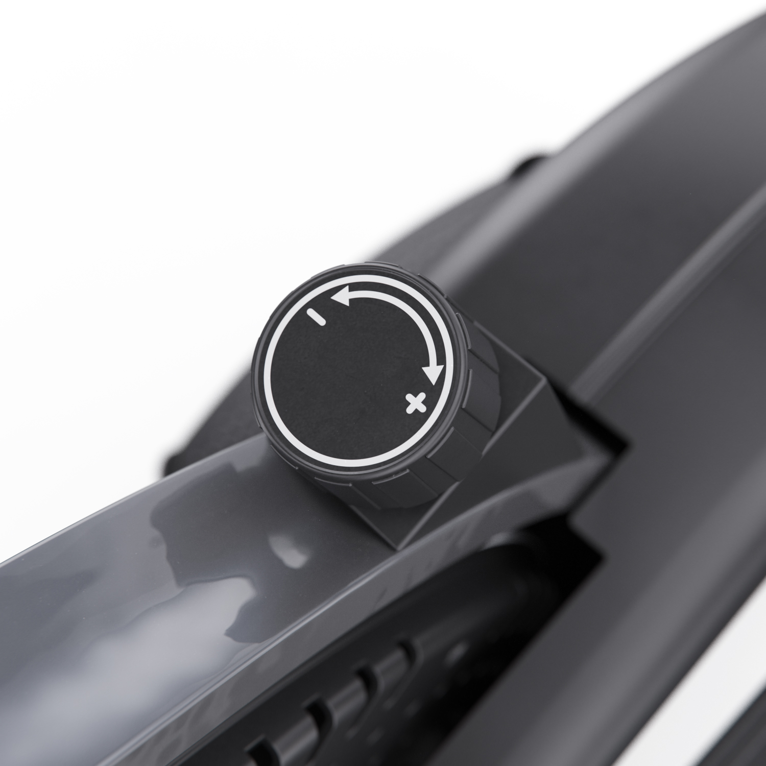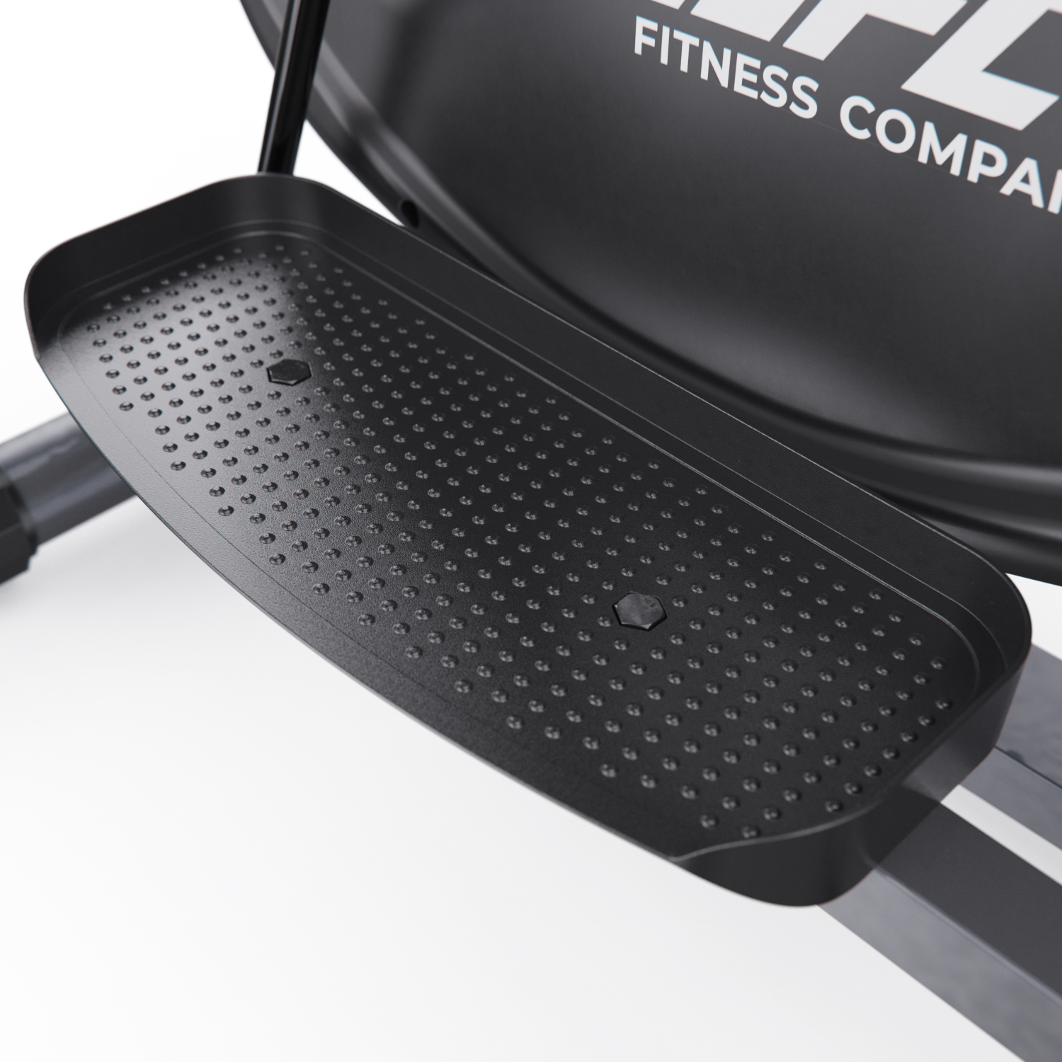 Этот тренажёр оснащён передним маховиком, что обеспечивает плавный и тихий ход. Благодаря двум положениям поручней (свободное и статичное) и регулировке на 4 уровня по высоте, вы сможете настроить тренажёр под себя.