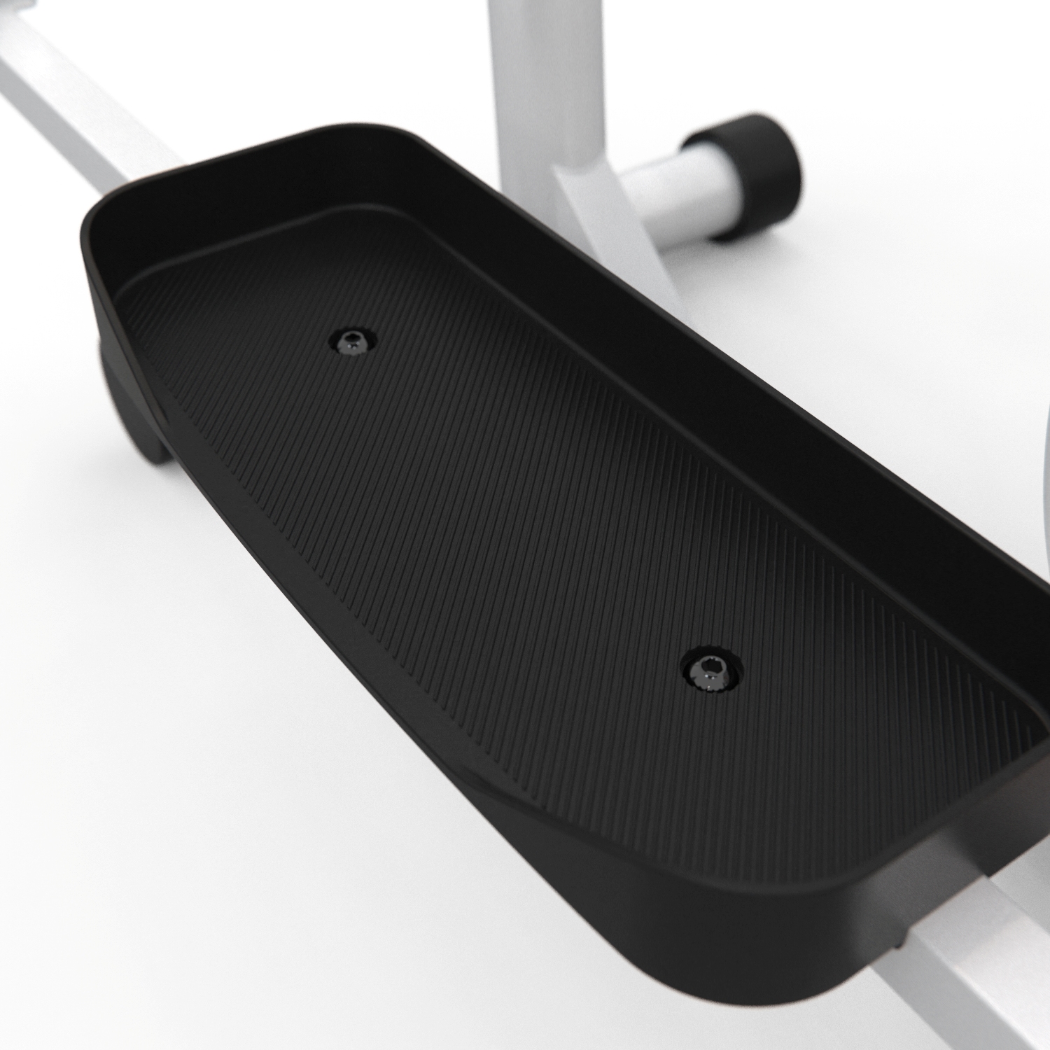 Тренажер E85001HWO подойдет людям с любой физической подготовкой, идеально подойдет как для начинающих, так и для более опытных спортсменов. Максимальный вес пользователя — 110 кг. Расстояние между педалями составляет 26,5 см, а длина шага — 28 см. Педали покрыты рифлёной поверхностью, что обеспечивает устойчивое положение ног и предотвращает скольжение.