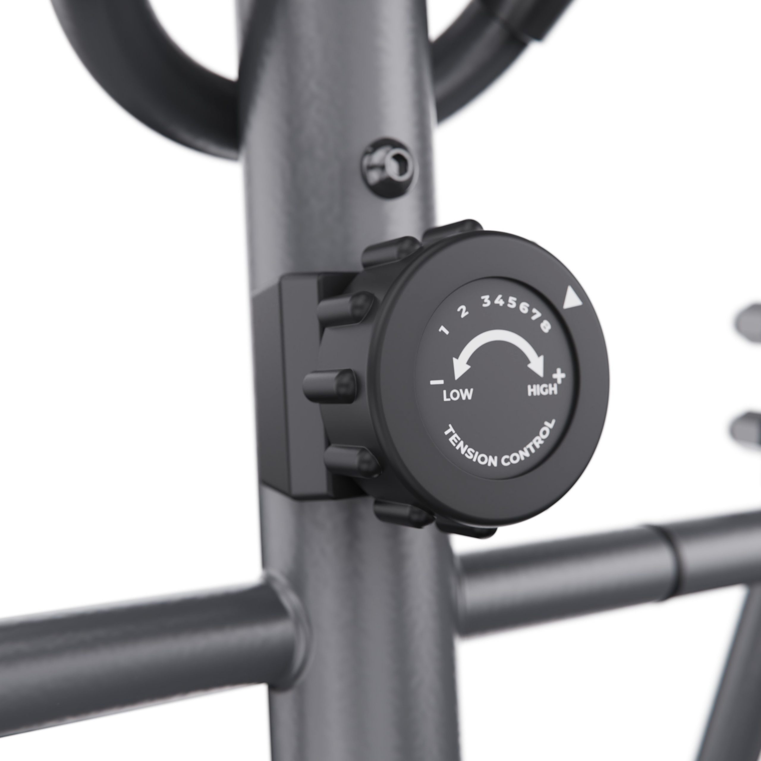 Модель рассчитана на пользователей весом до 110 кг. Магнитная система с механической регулировкой предлагает 8 уровней нагрузки, что позволяет легко адаптировать интенсивность тренировки под индивидуальные цели и уровень подготовки, а увеличенный инерционный вес маховика 7 кг способствует плавной и стабильной работе тренажёра, создавая комфортные условия для длительных и эффективных тренировок.