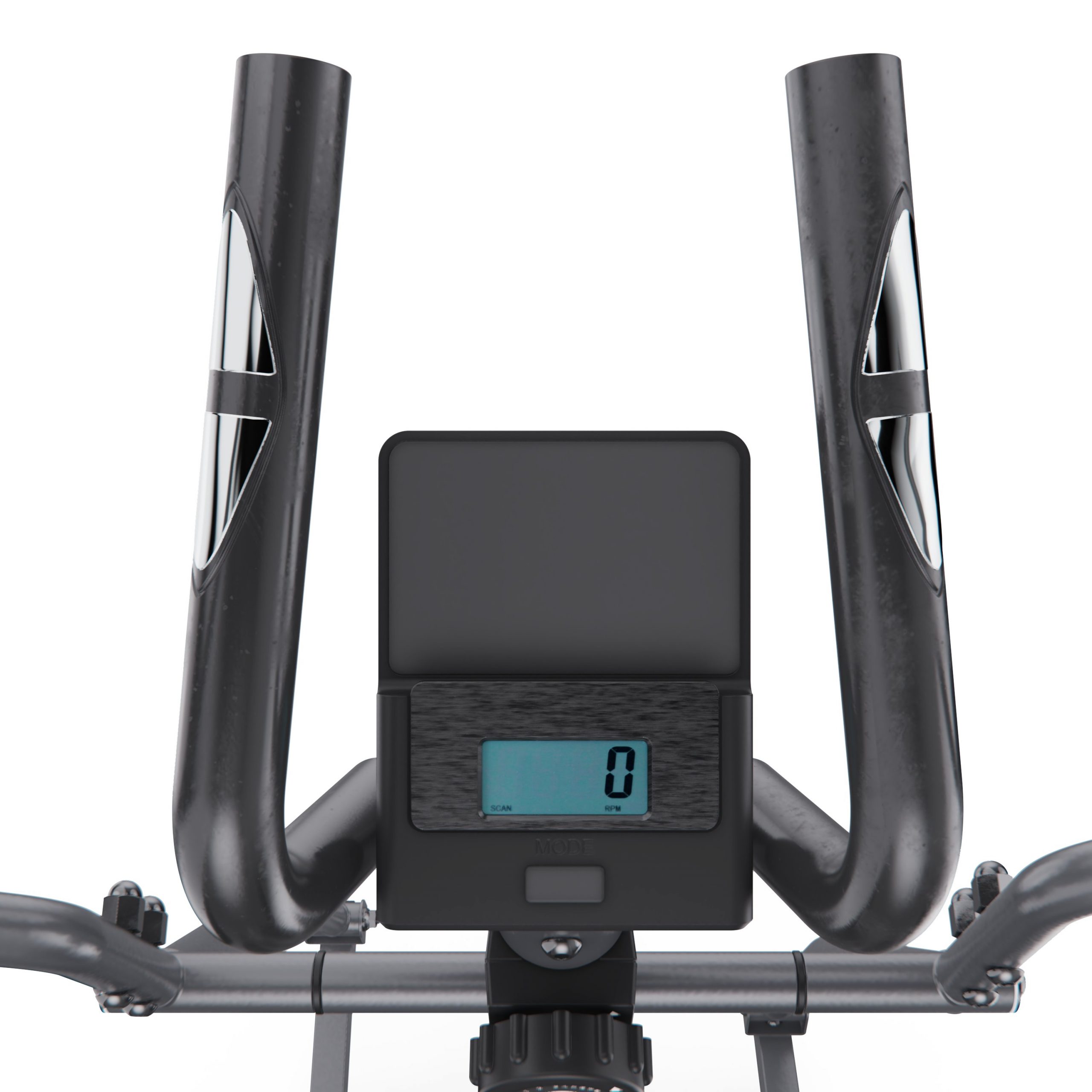 Тренажёр оснащён монохромным LCD-дисплеем, который отображает ключевые показатели тренировки: сканирование, время, скорость, дистанция, общая дистанция, калории и пульс. Для удобного отслеживания за состоянием организма во время тренировки на поручнях установлены сенсорные датчики пульса. Для работы дисплея используются две батарейки типа AAA, которые входят в комплект.