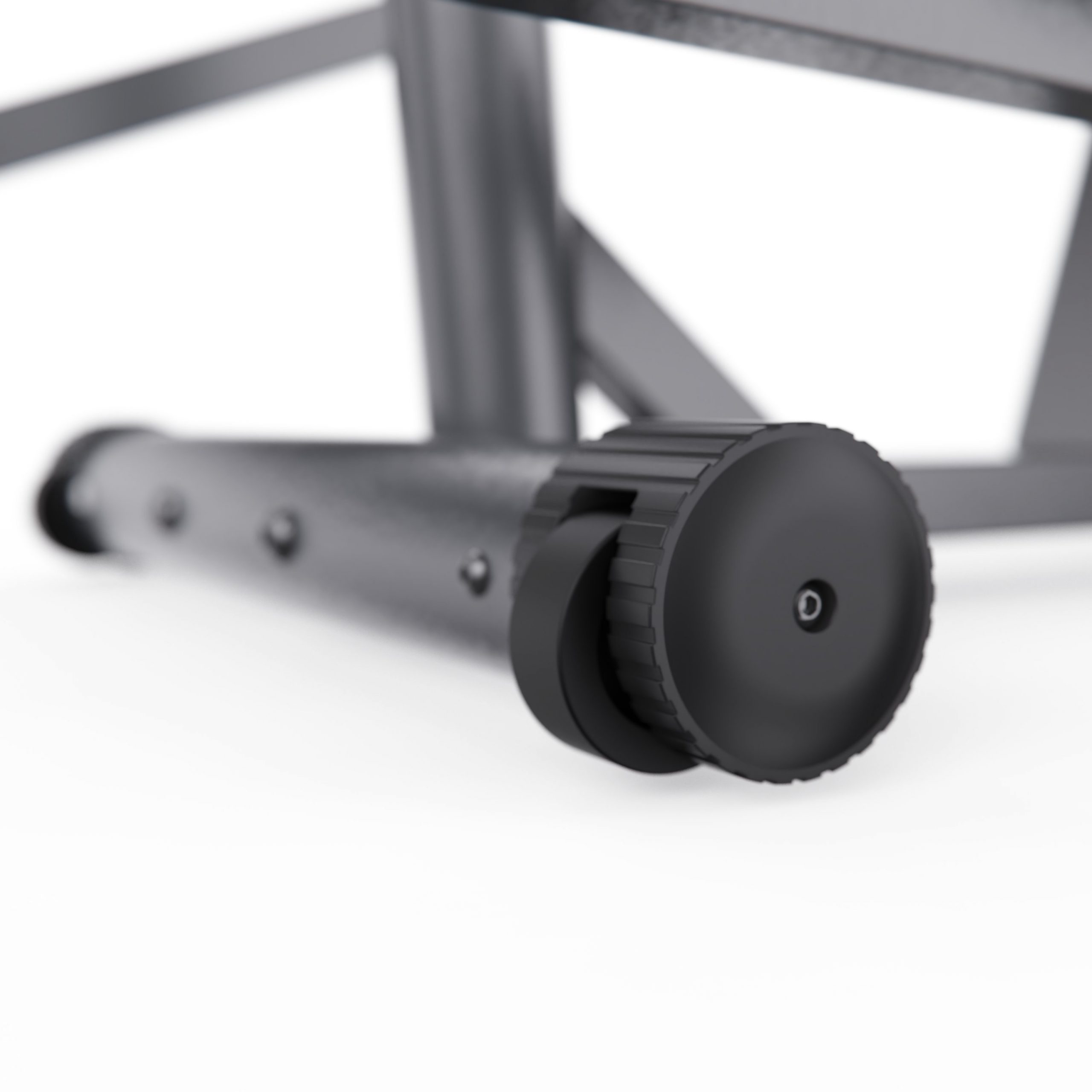 Также есть компенсаторы неровности пола, которые гарантируют стабильность тренажера, а транспортировочные ролики обеспечивают лёгкое и удобное перемещение, позволяя без труда менять его расположение в помещении.
