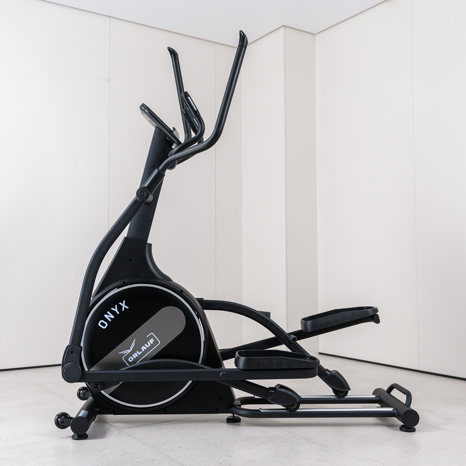 Эргономика Orlauf Onyx продумана для комфортных тренировок. Длина шага 51 см и расстояние между педалями 6 см обеспечивают удобное положение тела. Встроенные сенсорные датчики пульса и совместимость с беспроводным кардиопоясом помогают контролировать эффективность занятий.