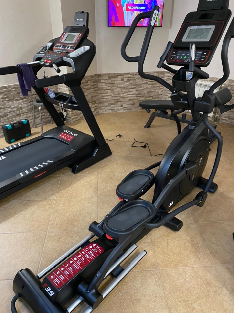 Приводная система обеспечивает тихое и невероятно плавное движение как в прямом, так и в обратном направлении. Это достигается благодаря наличию тяжелого маховика весом 11.5 кг и высокого передаточного отношения. Sole E35 2019 оснащен функцией регулировки угла наклона, включающей 20 уровней, что позволяет увеличить нагрузку и задействовать максимальное количество мышц.