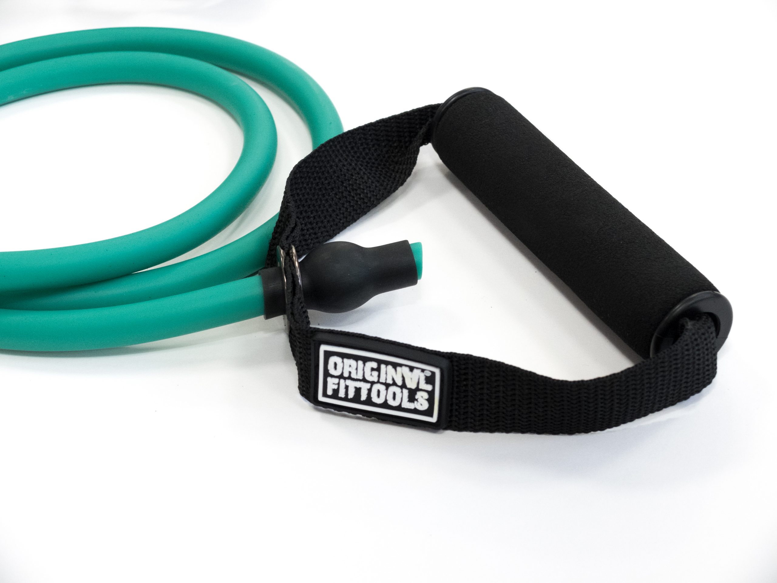 Для индивидуальных занятий трубчатый эспандер с ручками Original FitTools зелёного цвета размером 1350х11х6 мм