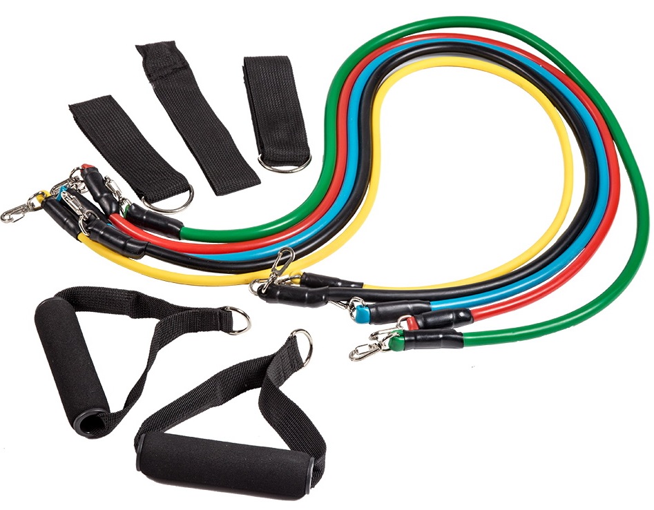 В комплект входят пять латексных цветных трубок, каждая из которых предназначена для определенной нагрузки. Их можно использовать как по отдельности, так и по нескольку сразу, тем самым увеличивая нагрузку.