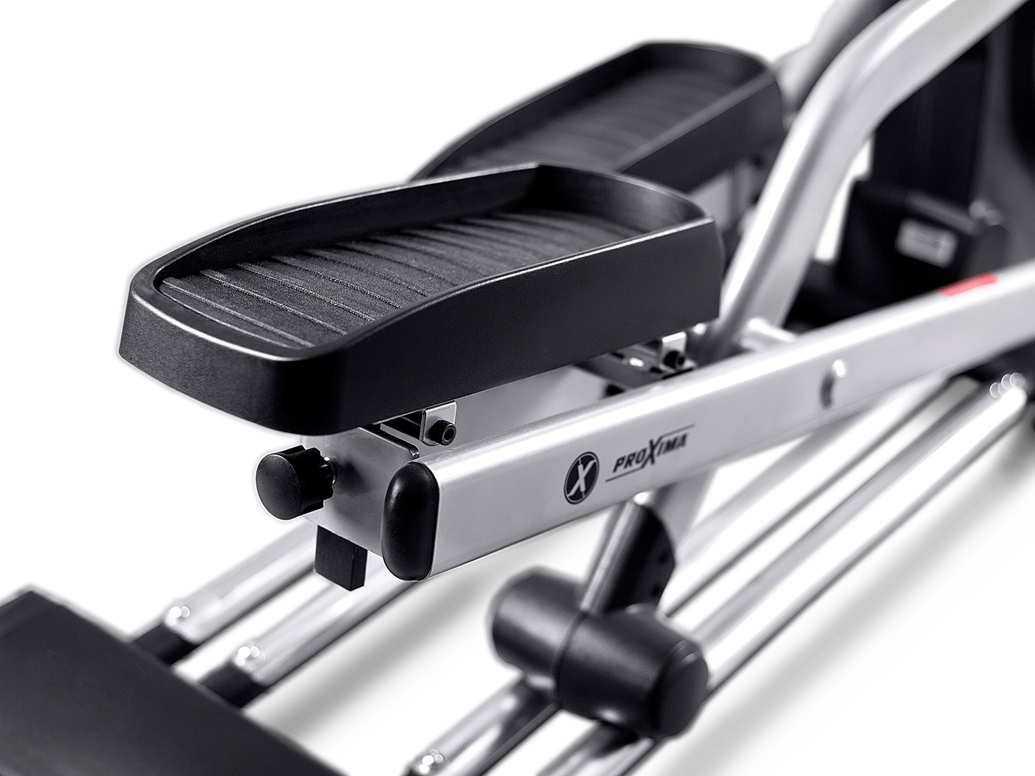 Переднеприводной эллиптический тренажер с генератором Proxima Senator для использования в домашних условиях. Наиболее удобен и комфортен для пользователей. Он устойчивый: оснащен сдвоенными колесами на металлических направляющих и фронтальными стабилизаторами. Минимальный Q-фактор 8 см в сочетании с длиной шага 58 см и высотой шага 23 см позволяет почувствовать естественные беговые движения, а дополнительные мягкие педали подарят вам ощущения мягкости бега. Функция изменения угла наклона педалей «ANKLE SUPPORT»™ фиксирует стопу пользователя в индивидуально комфортном положении и позволяет прорабатывать разные группы мышц за счет перераспределения нагрузки.