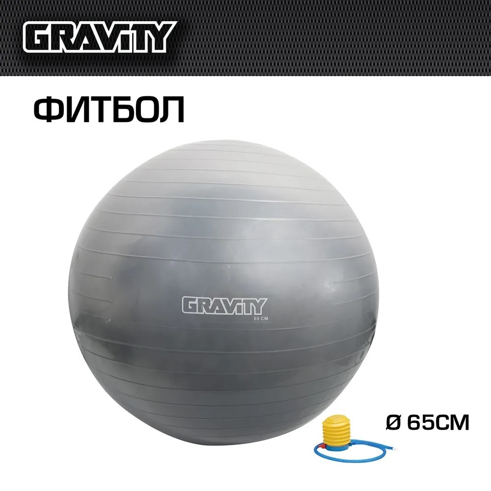 Фитбол Gravity Gymball, 65 см, серебристый, с насосом