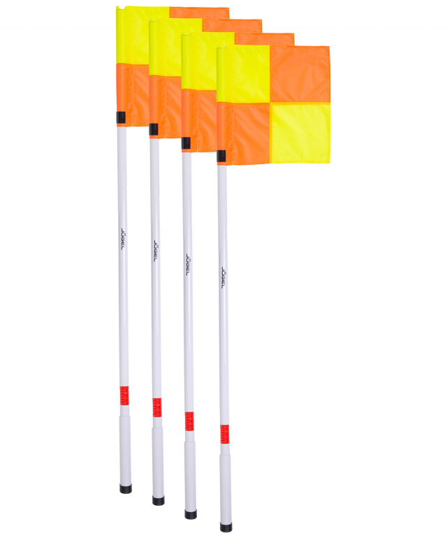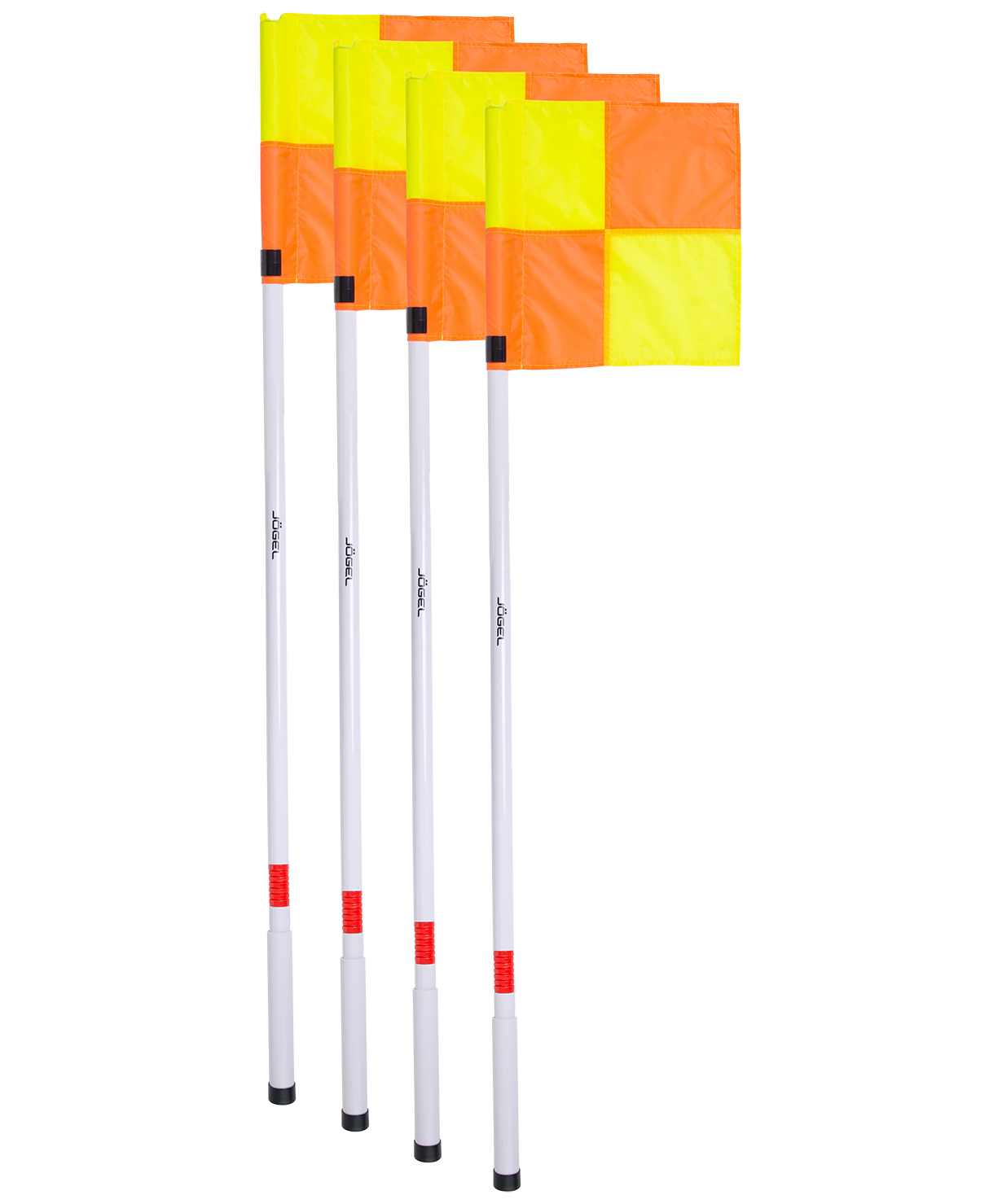 Профессиональный комплект угловых флагов Jögel с пружиной и гильзой под стойку. Материал флага выполнен из долговечного полиэсетра. Комплект угловых флагов позволит оборудовать стадион для любого уровня соревнований. Набор состоит из 4 наименований.