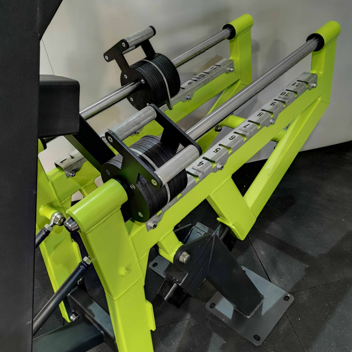 Подвижные рычаги оснащены передвижными грузовыми блоками, изготовленными из листового металла толщиной 8 мм. Перемещение грузовых блоков осуществляется с использованием подшипников при помощи парных рукоятей из металлического прутка с мягкой накаткой.