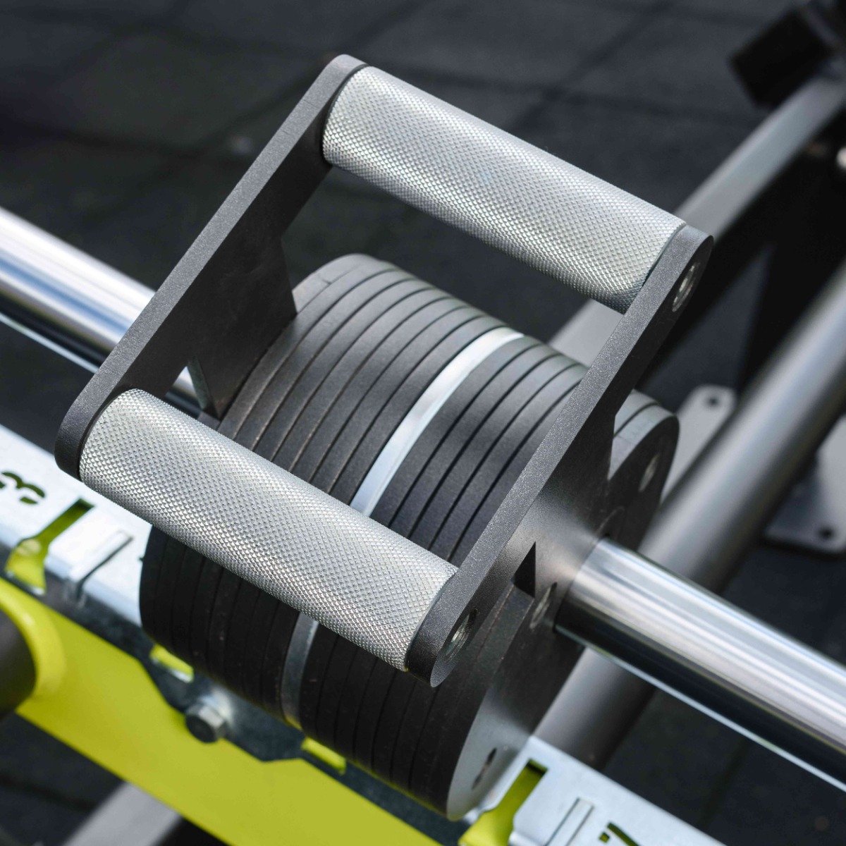 Подвижные рычаги оснащены передвижными грузовыми блоками, изготовленными из листового металла толщиной 8 мм. Перемещение грузовых блоков осуществляется с использованием подшипников при помощи парных рукоятей из металлического прутка с мягкой накаткой.