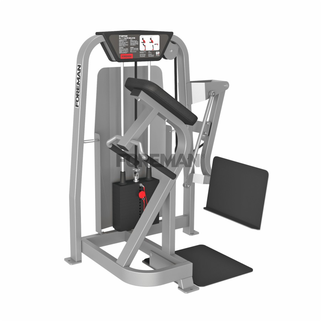 - Нелинейная траектория движения фокусирует нагрузку на ягодицах, изолируя бедро.