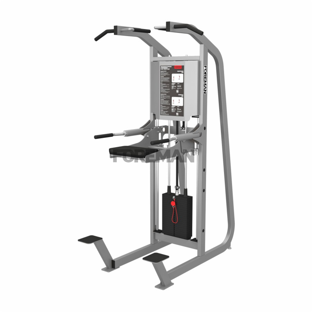- Откидываемая платформа позволяет выполнять подтягивания и отжимания на брусьях без использования противовеса.