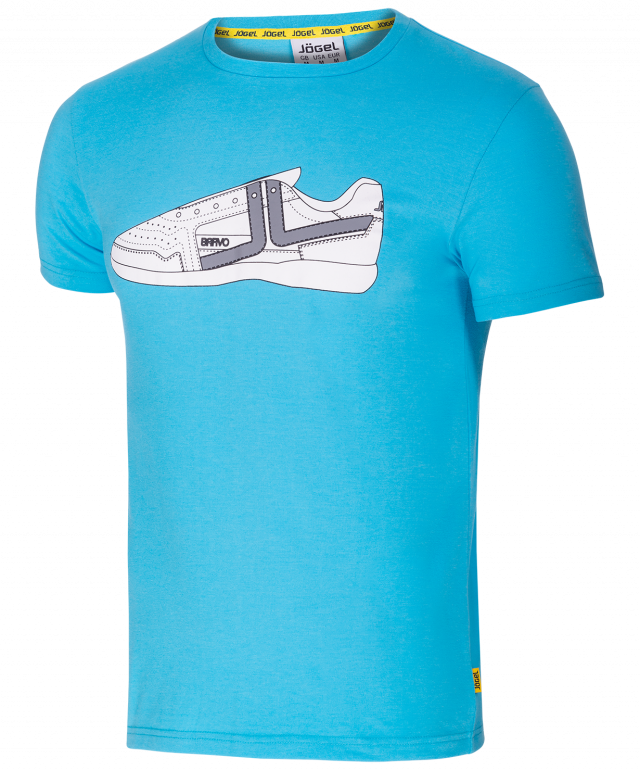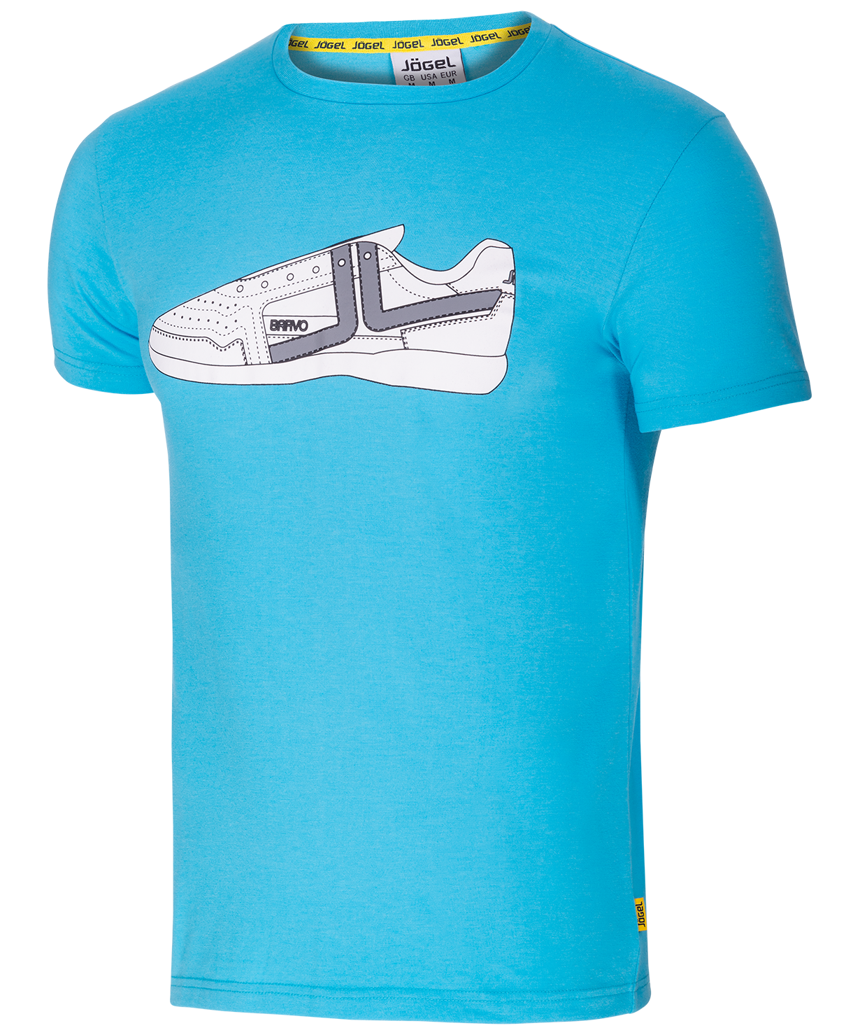 Стильная футболка для занятий спортом и тренировок, имеет оригинальный принт на передней части изделия, выполненного в виде кроссовка. Модель с прямым кроем, короткими рукавами и округлой горловиной, внутри горловина подшита с логотипом бренда.