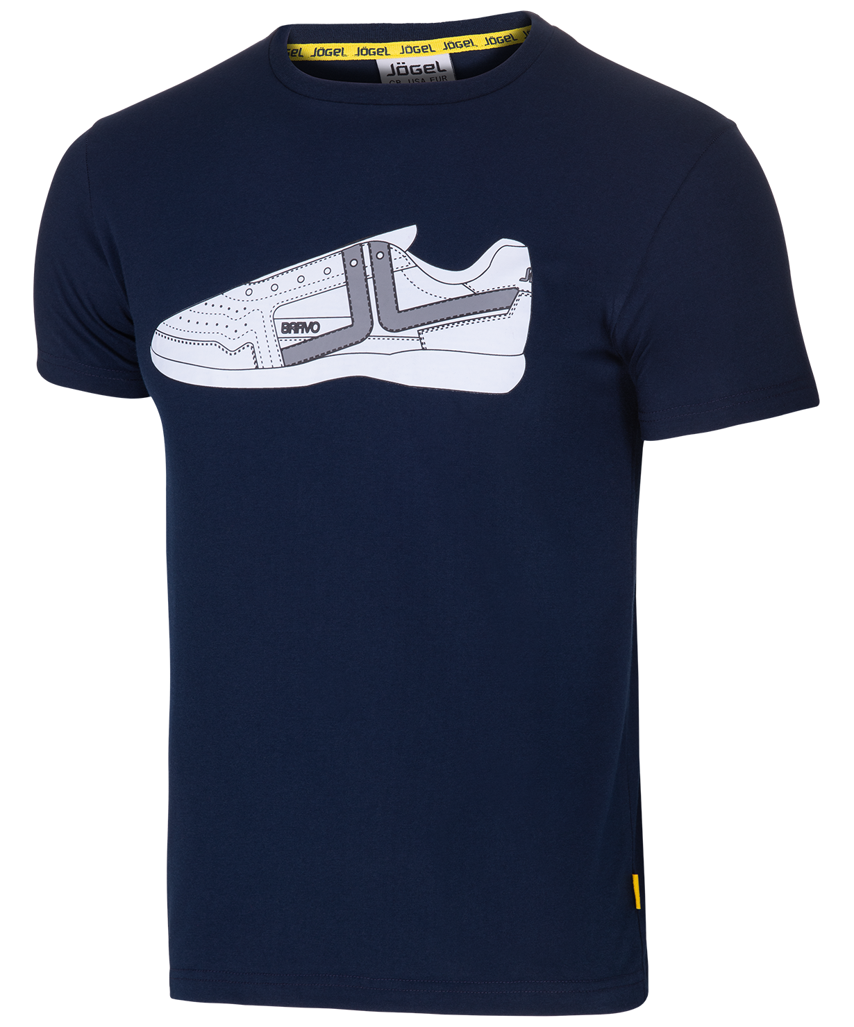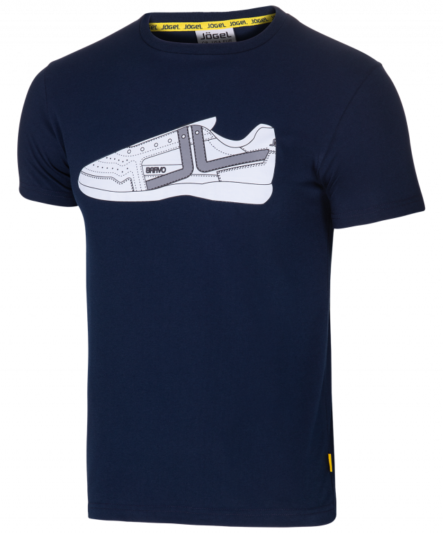 Стильная футболка для занятий спортом и тренировок, имеет оригинальный принт на передней части изделия, выполненного в виде кроссовка. Модель с прямым кроем, короткими рукавами и округлой горловиной, внутри горловина подшита с логотипом бренда.