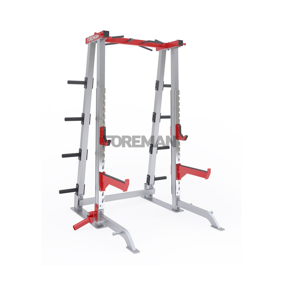 - В нижней части левой стойки размещен торсонатор предназначенный для выполнения различных упражнений с грифом (вращения, подъемы, тяги в наклоне).