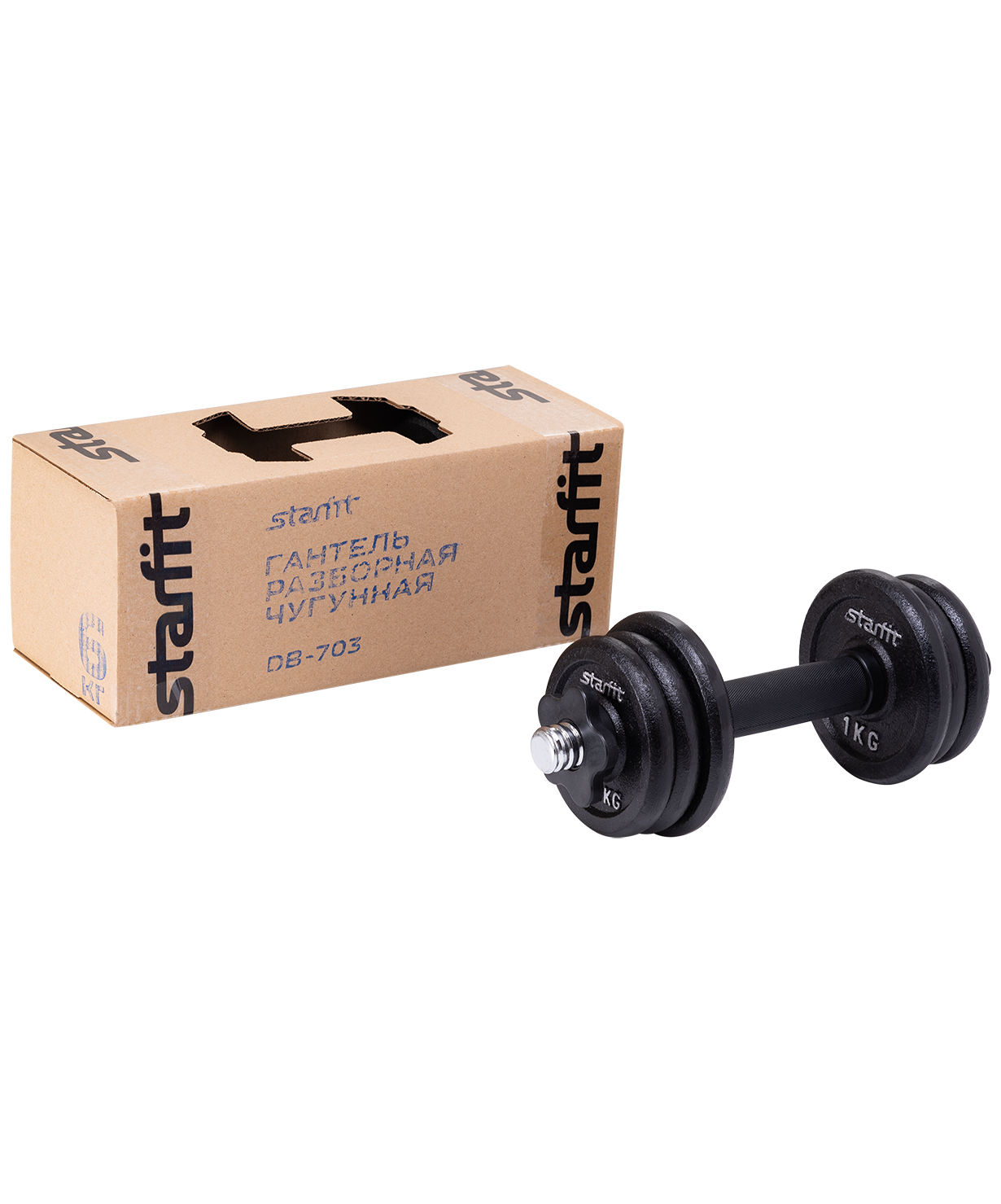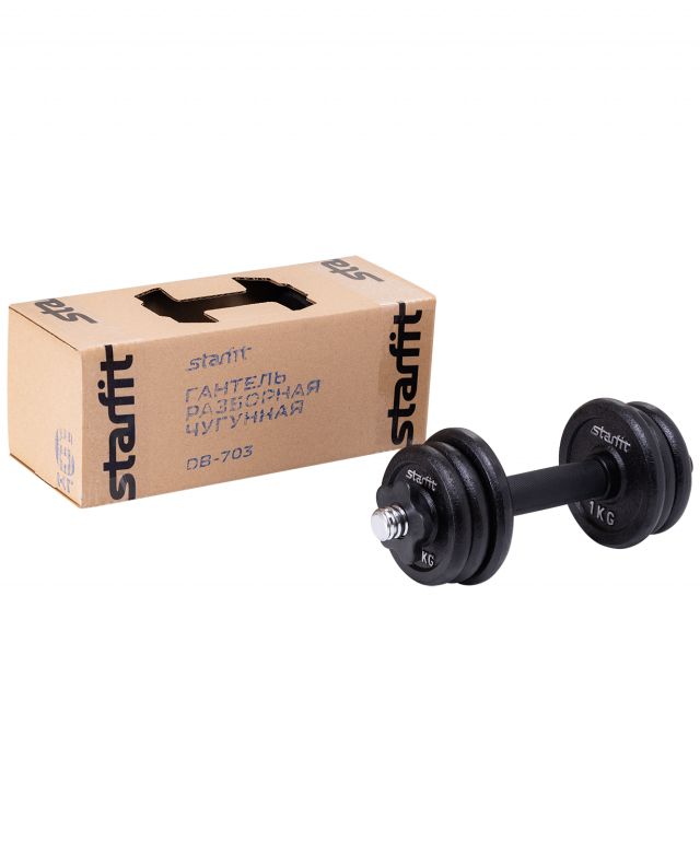 Гантель разборная чугунная DB-703 состоит из стального грифа с пластиковым хватом и чугунных дисков разного веса. Нескользящая поверхность грифа на месте хвата повышает безопасность тренировок. Широкий шаг резьбы позволяет за считанные секунды поменять вес. Гриф комплектуется пластиковыми замками, которые надежно фиксируют диски на грифе.